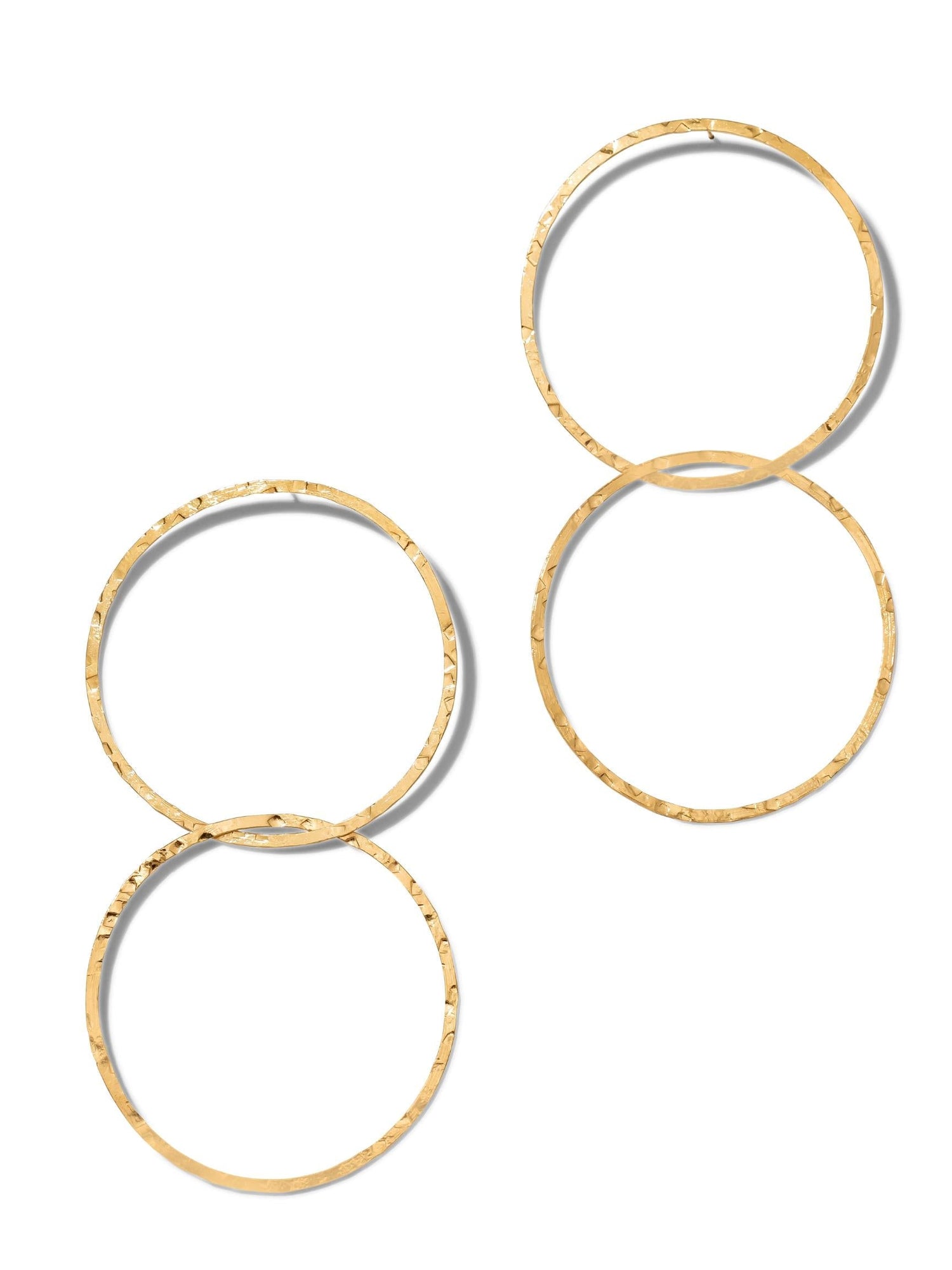 These post earrings are crafted with a hammered finish and are plated in 18K gold. They are generously sized circular earrings that are remarkably light.