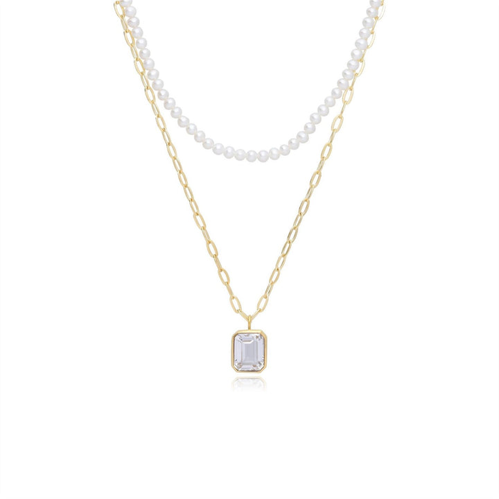 Ecfewtm The Unifier 18ct Gold Plated White Topaz Pearl Layered Necklace