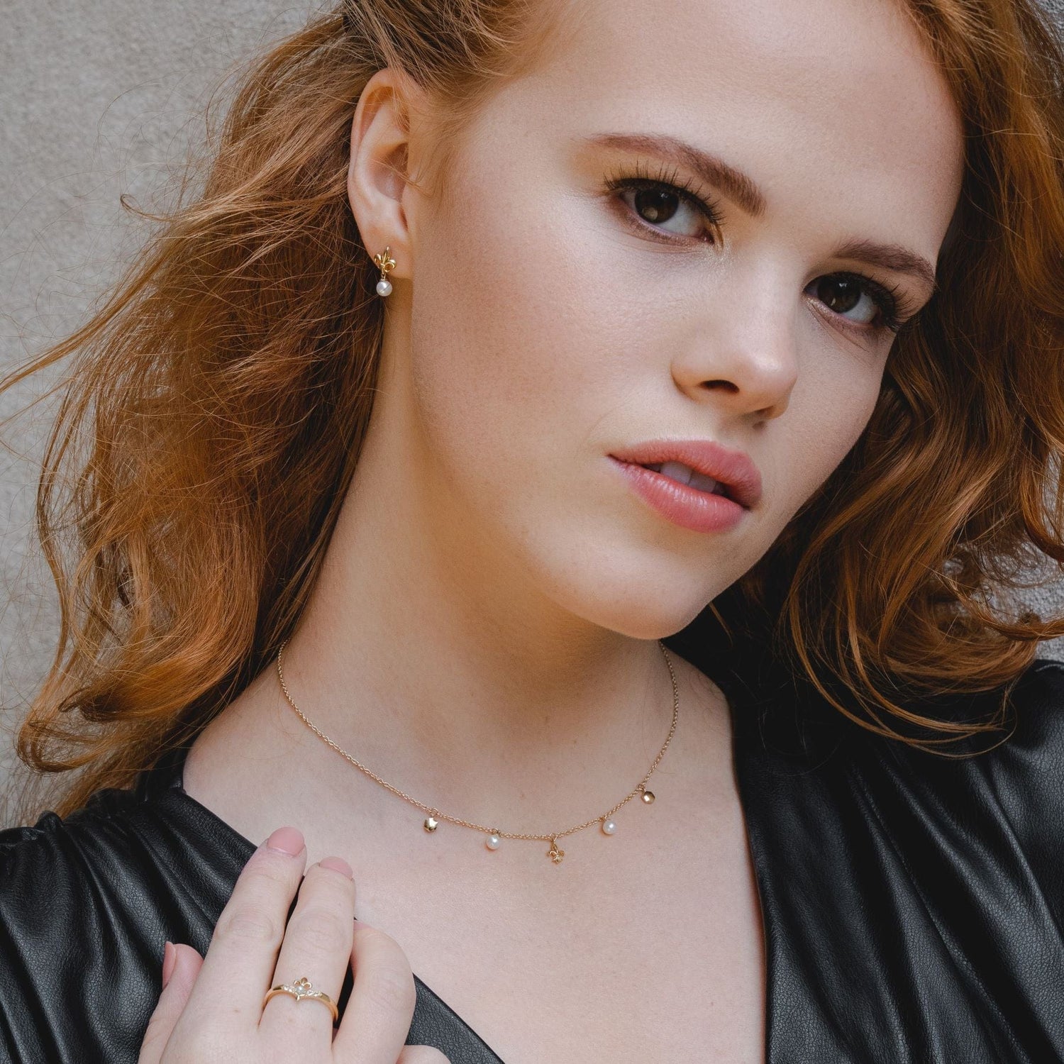 This stunning 9ct gold Fleur De Lis choker necklace is inspired by the historical heroine of France and features two beautiful pearls. Fleur De Lis is a decorative lily often used to represent Catholic saints of France. The perfect way to add power and elegance to your jewellery collection.