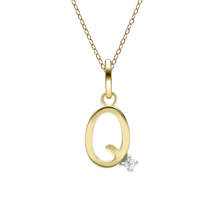 Let the world know your name in an understated style with this petite 9ct yellow gold diamond initial pendant necklace. This design includes a matching 9ct yellow gold 45cm chain to create your own diamond letter Q personalised necklace.