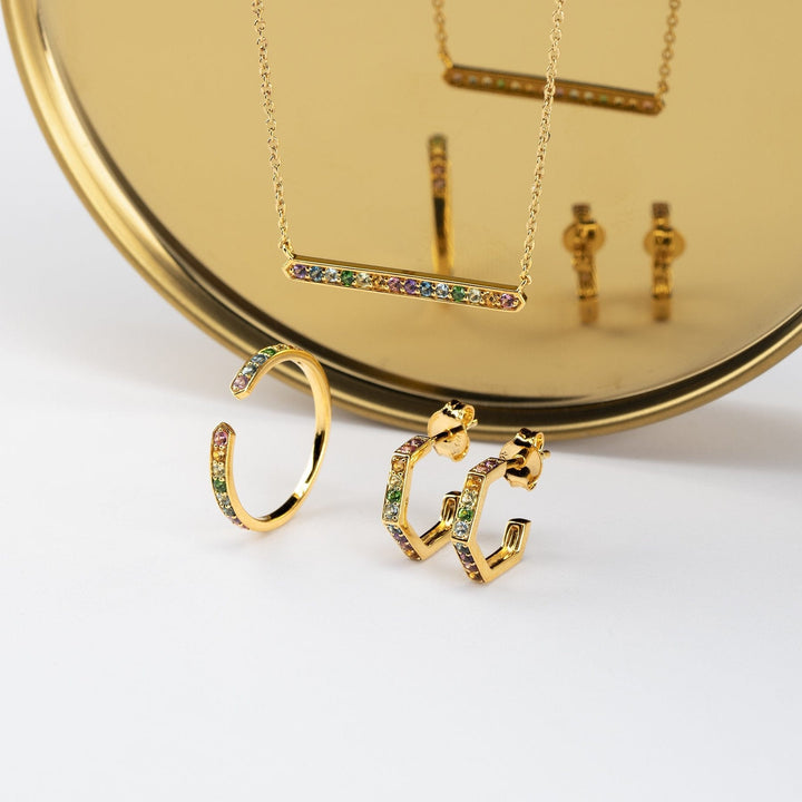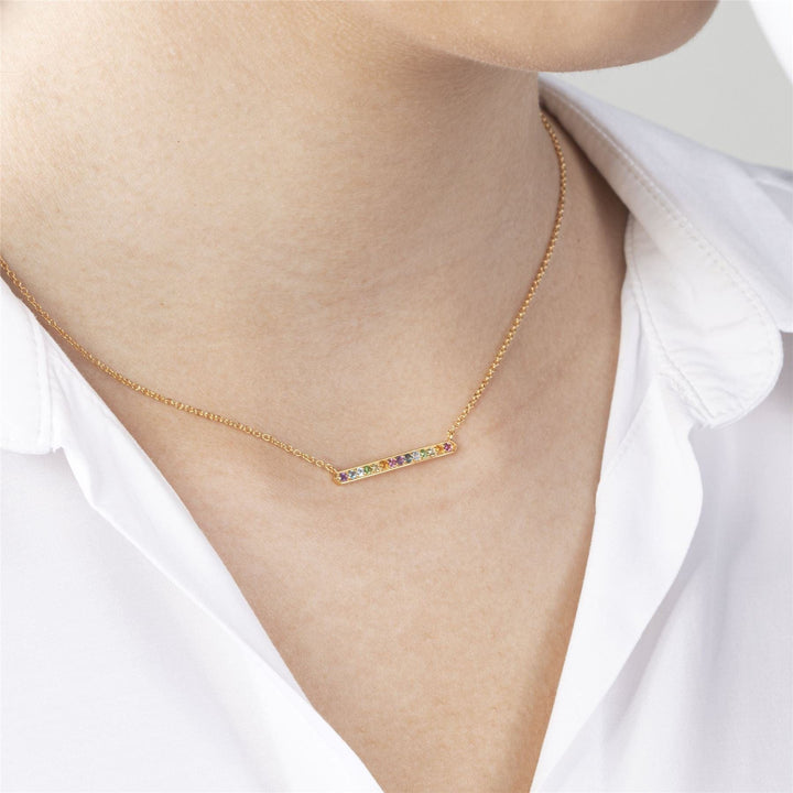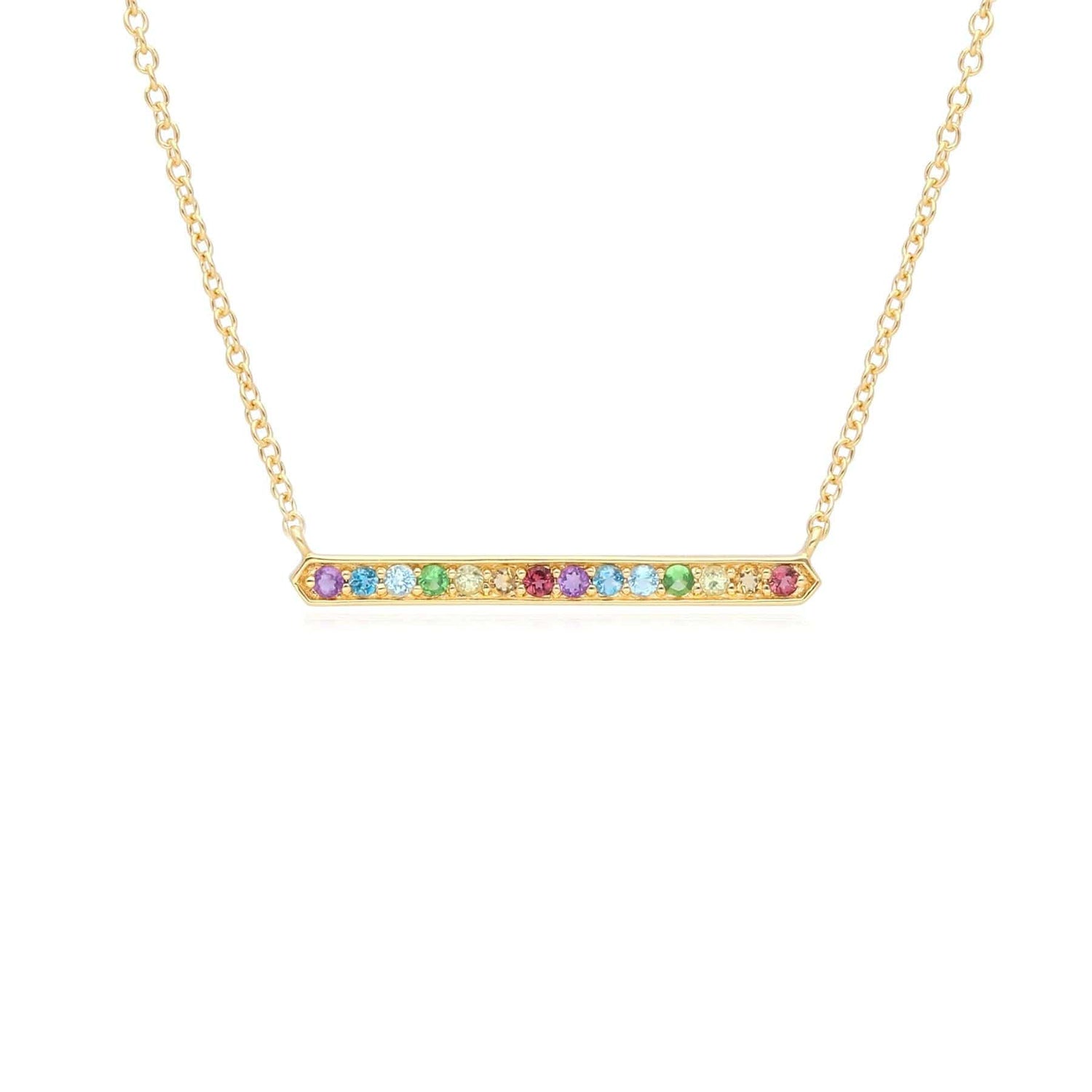 Rainbow Gemstone Bar Necklace In Gold Plated
