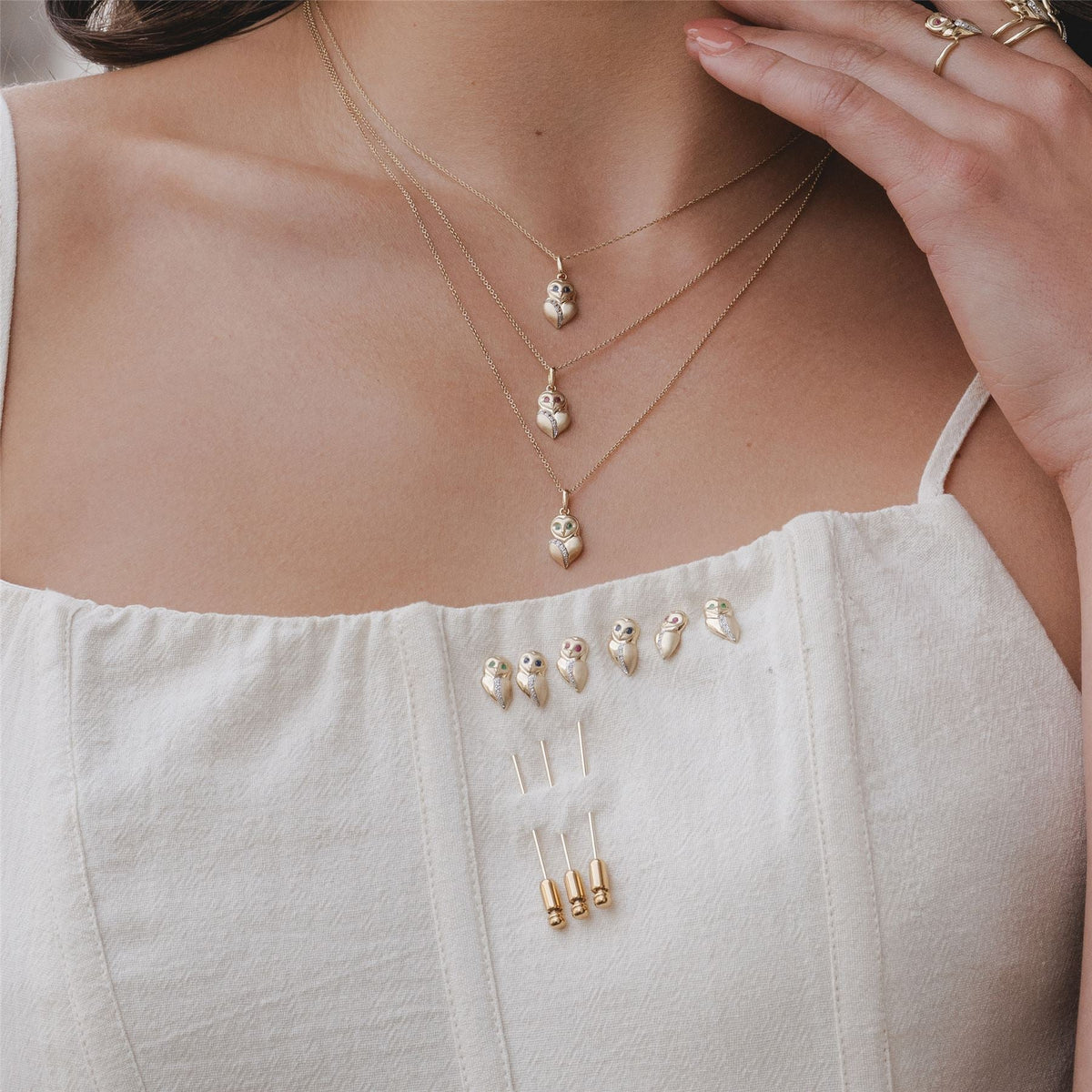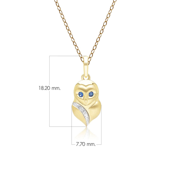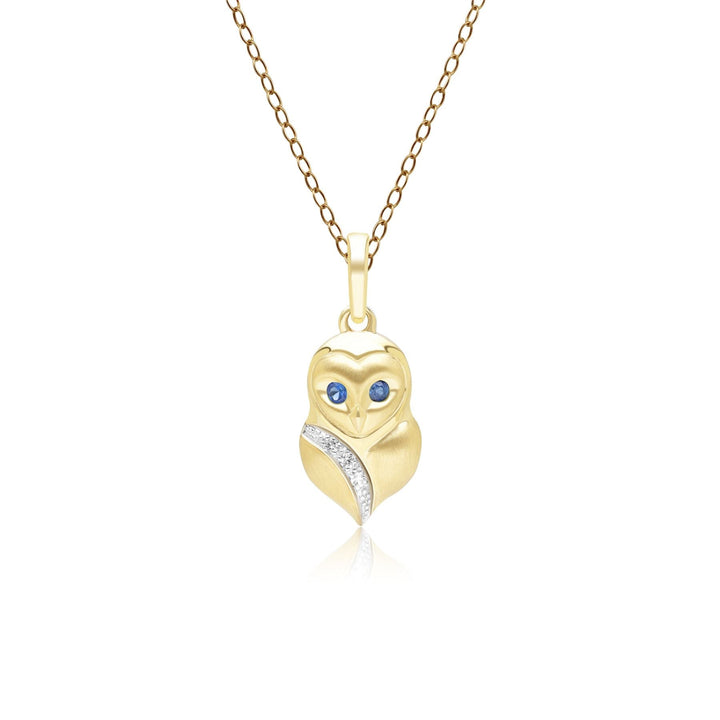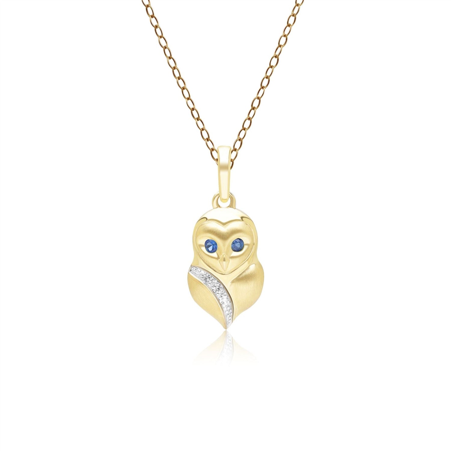 Gardenia Sapphire White Sapphire Owl Pendant Necklace In Yellow Gold