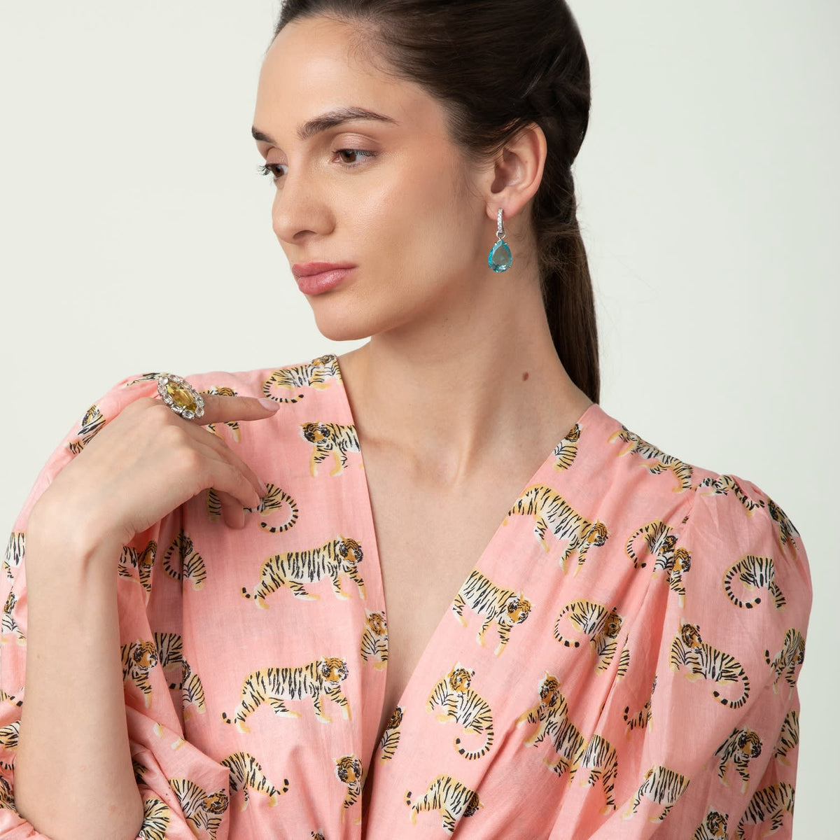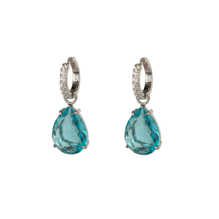 These huggies are crafted with semi-precious stones. They are designed to be worn alone or with an additional pear-shaped drop.