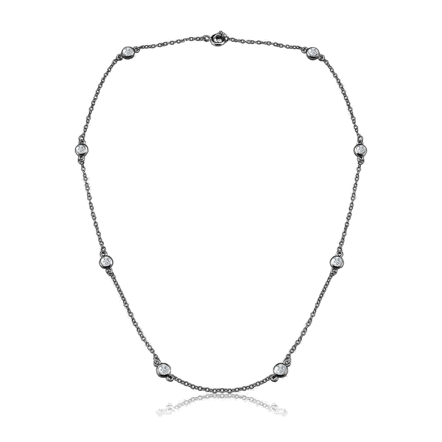 Sterling Silver Black Plated Clear Cubic Zirconia Accent Necklace
