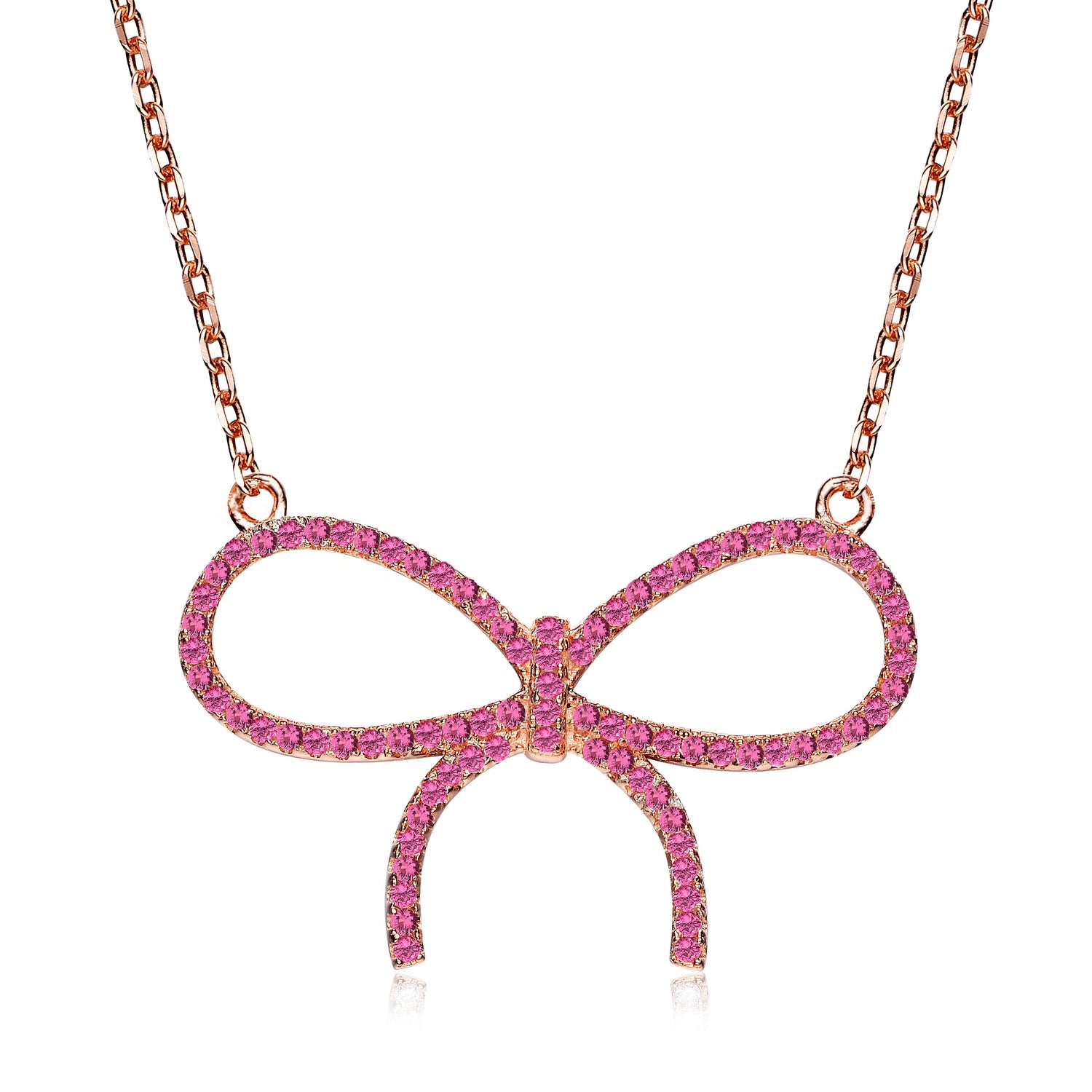 Rose Plated Cubic Zirconia Bow Tie Necklace