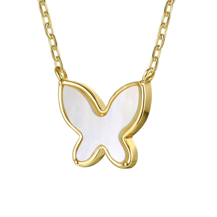 Gold Plated Mother Of Pearl Butterfly Pendant Layering Necklace