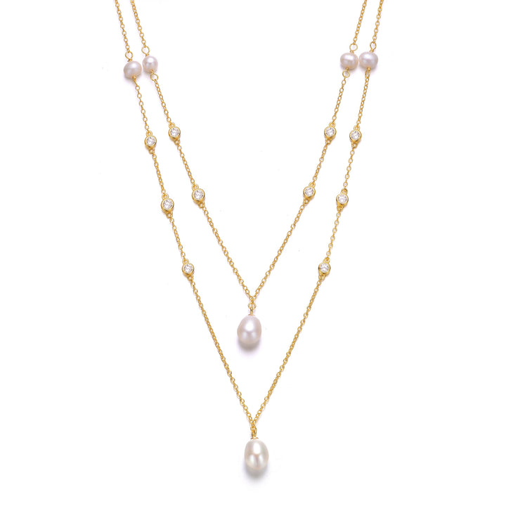 Delphine Golden Pearl Dainty Layered Duble Necklace
