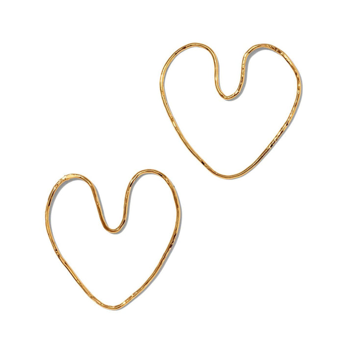 These earrings are lovingly handmade and feature a heart shape. They are plated in 18K gold.
