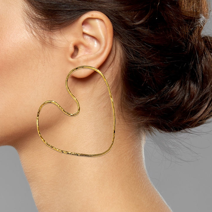 Gold Large Fluttering Heart Earrings