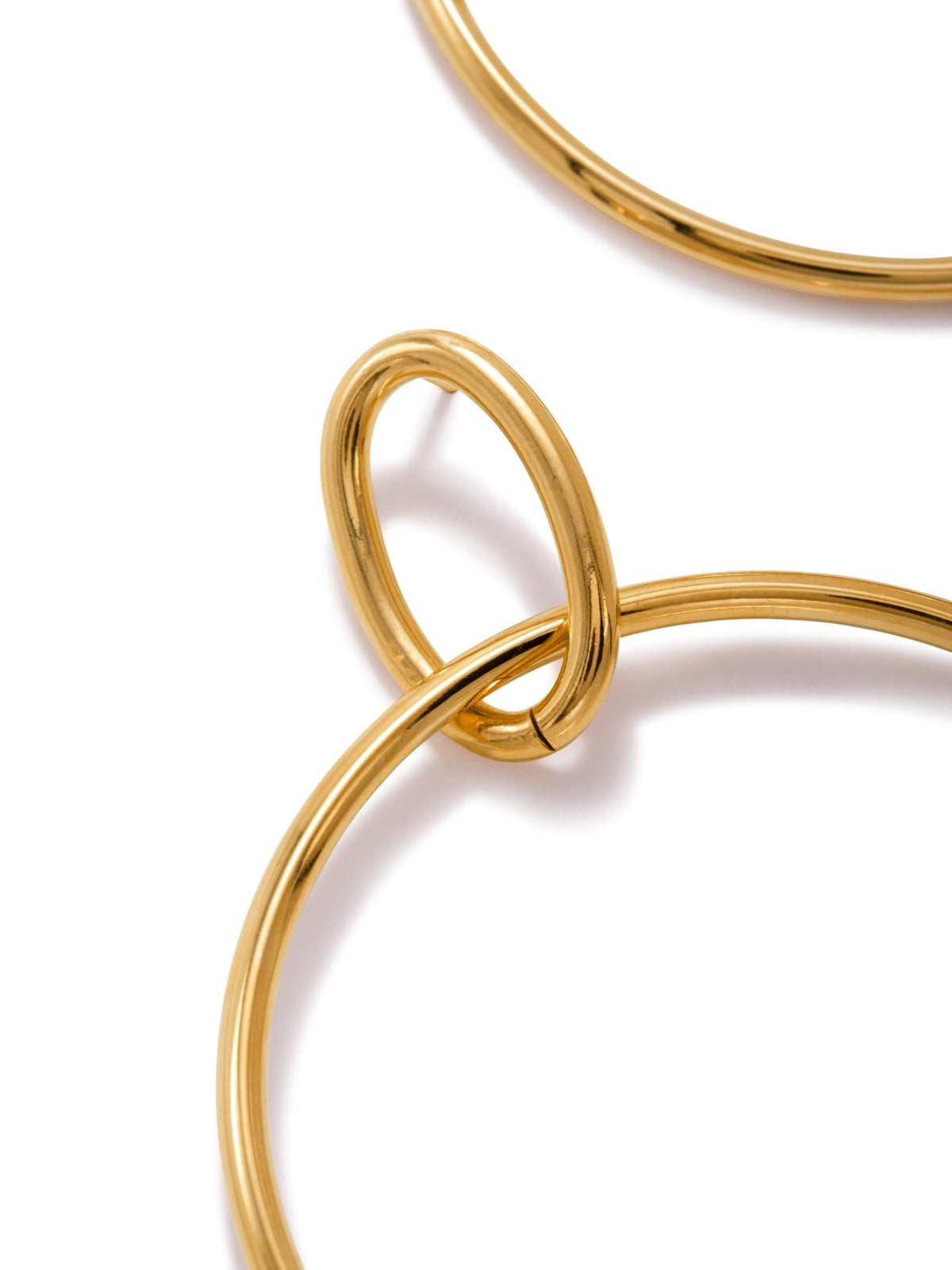 These earrings are crafted with a large link that dangles from an oval link post. They are plated in luxurious 18K gold.