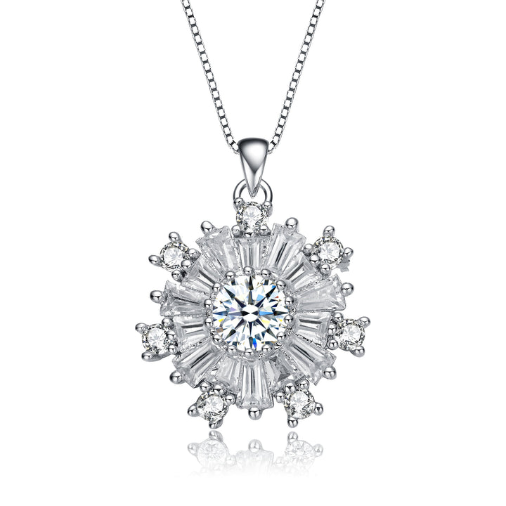 Rachel Glauber White Gold Plated Cubic Zirconia Flower Snowflake Pendant Necklace