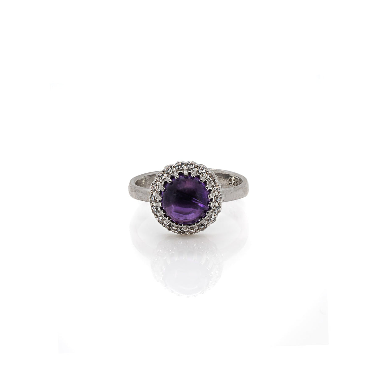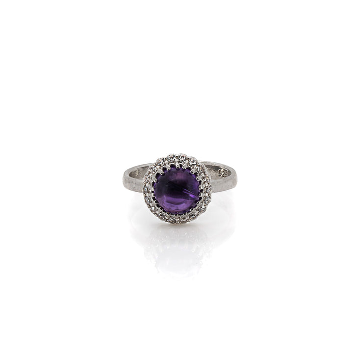 Sterling Silver & Diamond Amethyst Stone Adjustable Ring - Purple