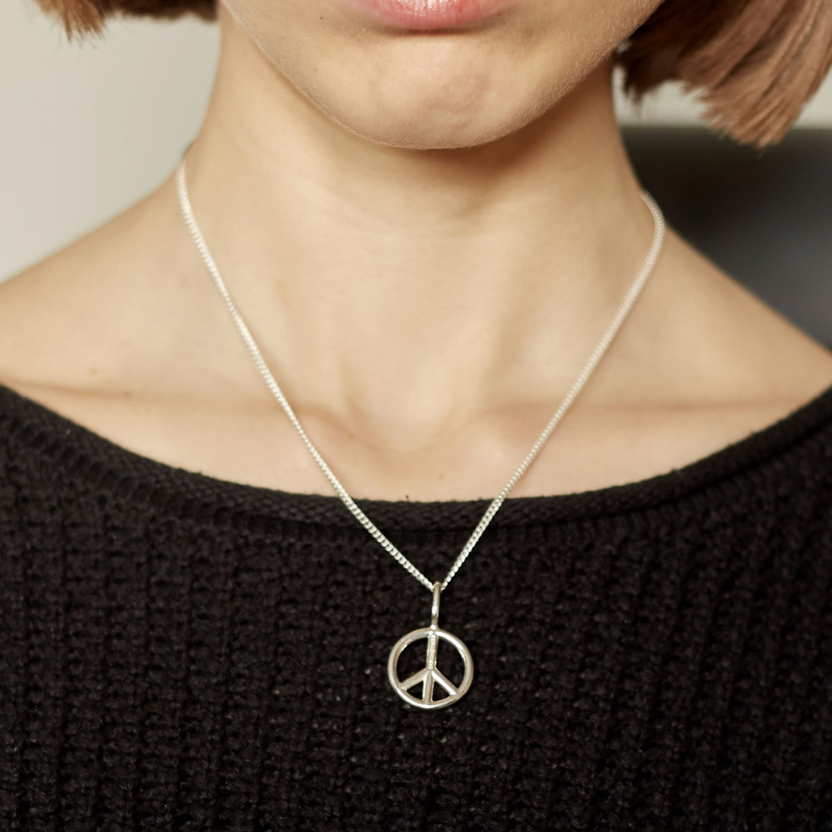 A beautiful and classic peace sign charm in solid sterling silver, the perfect complement to any outfit - day or night. As with all Katie Mullally designs, the charm is collectable and can be delicately layered with other pieces.
