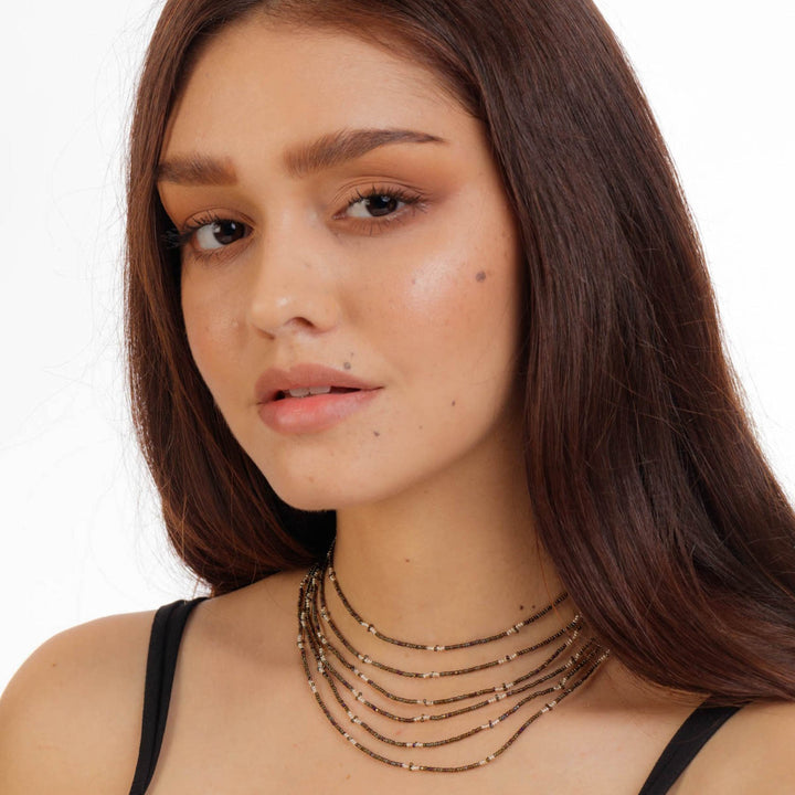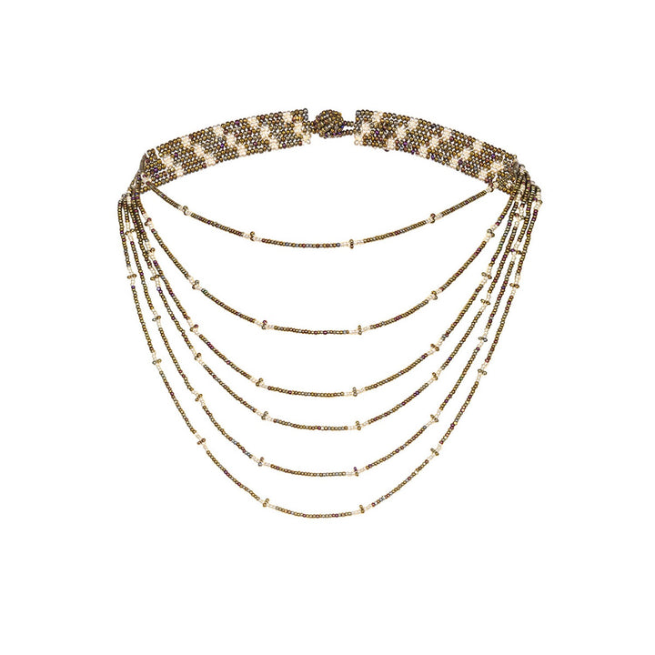 Technique that transforms centuries of tradition into art. Choker with layered straps, handmade by members of the Wixárika culture weaving