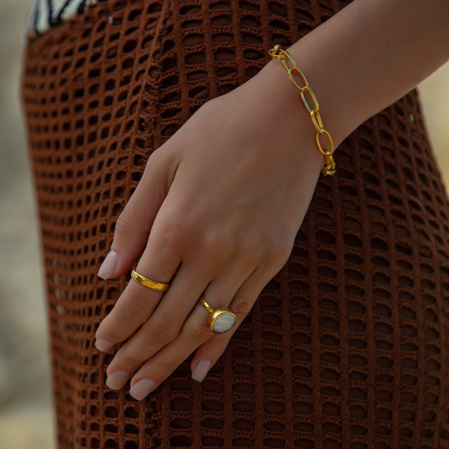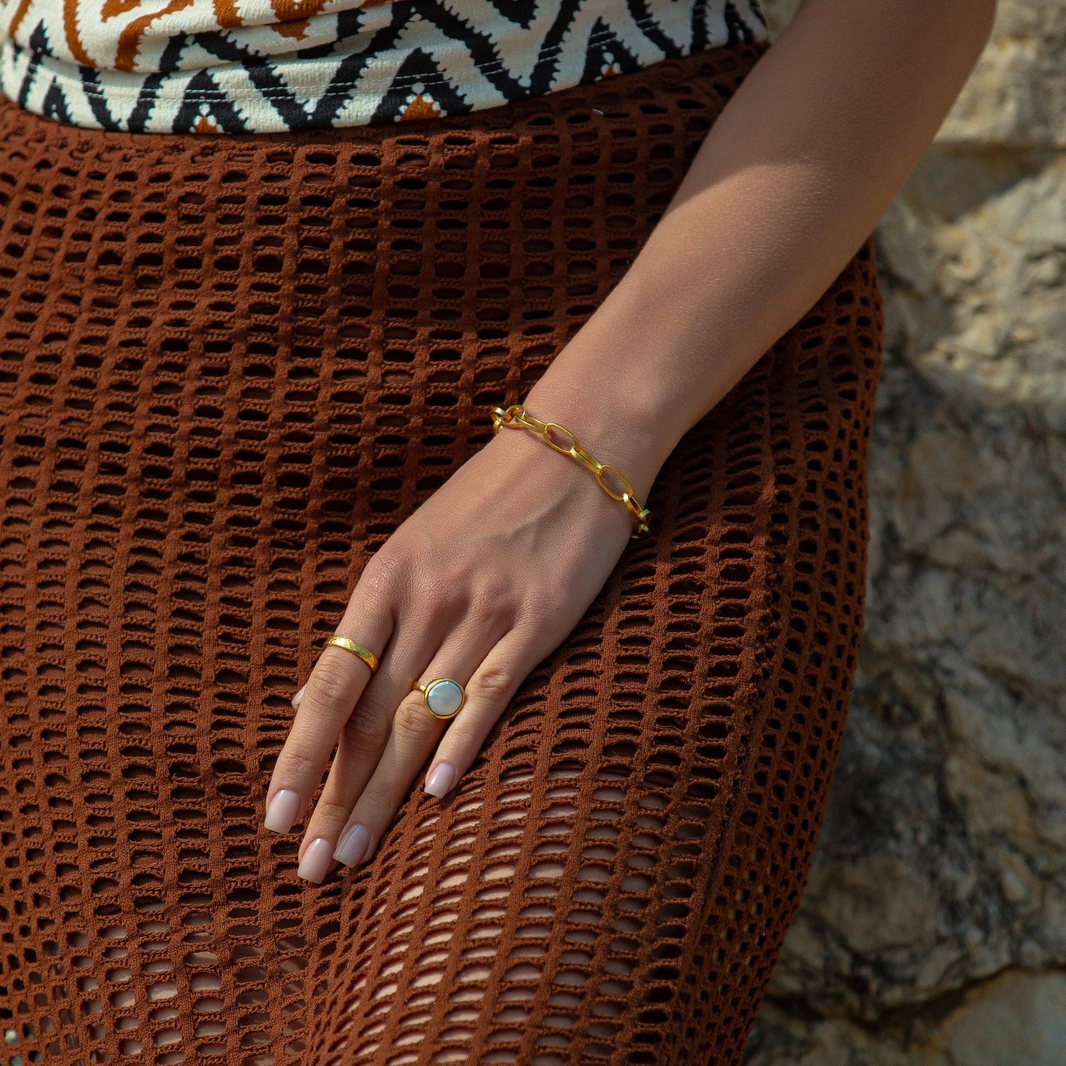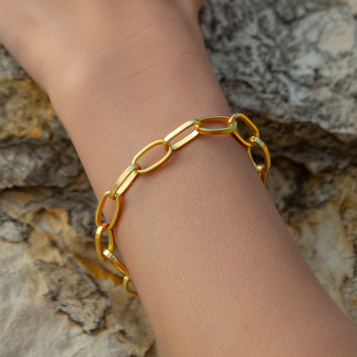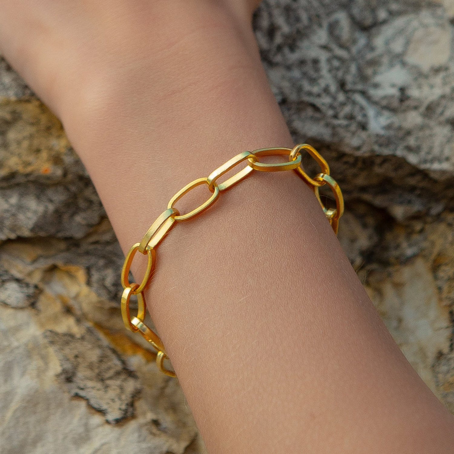 This Adjustable Large Gold Chain Bracelet by Mejoma is a bold and versatile statement piece. The stunning, large chain links create a powerful, modern aesthetic that adds a touch of luxury to any outfit. Its adjustable feature ensures a comfortable and perfect fit for all wrist sizes, making it a must-have accessory for effortless style, whether worn alone or stacked.