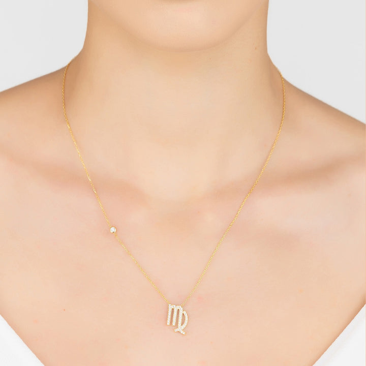 Zodiac Star Sign Pendant Necklace Gold Virgo