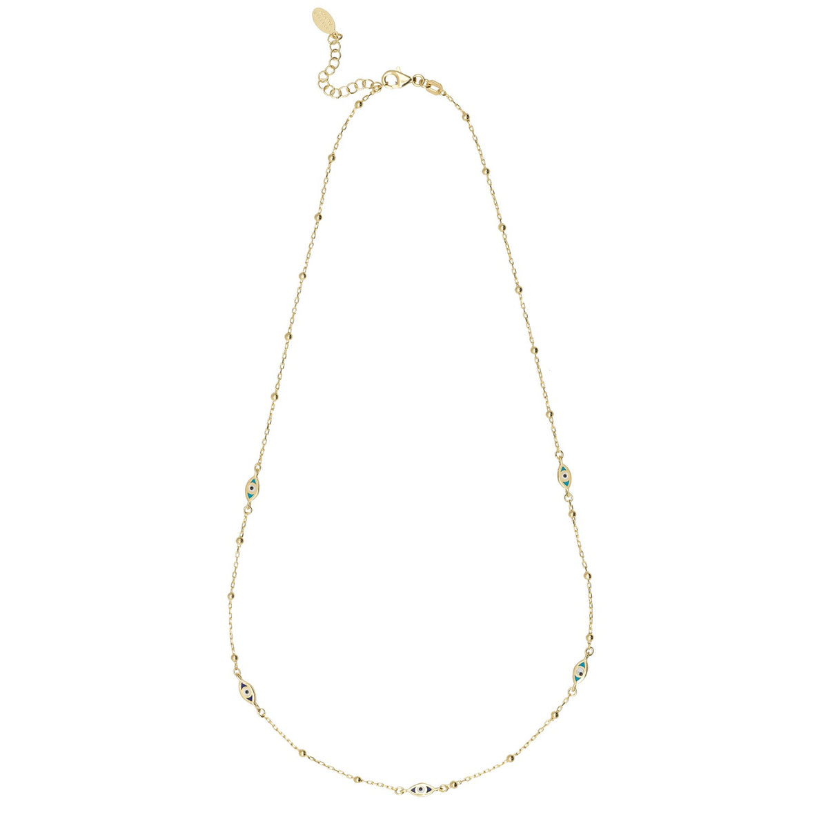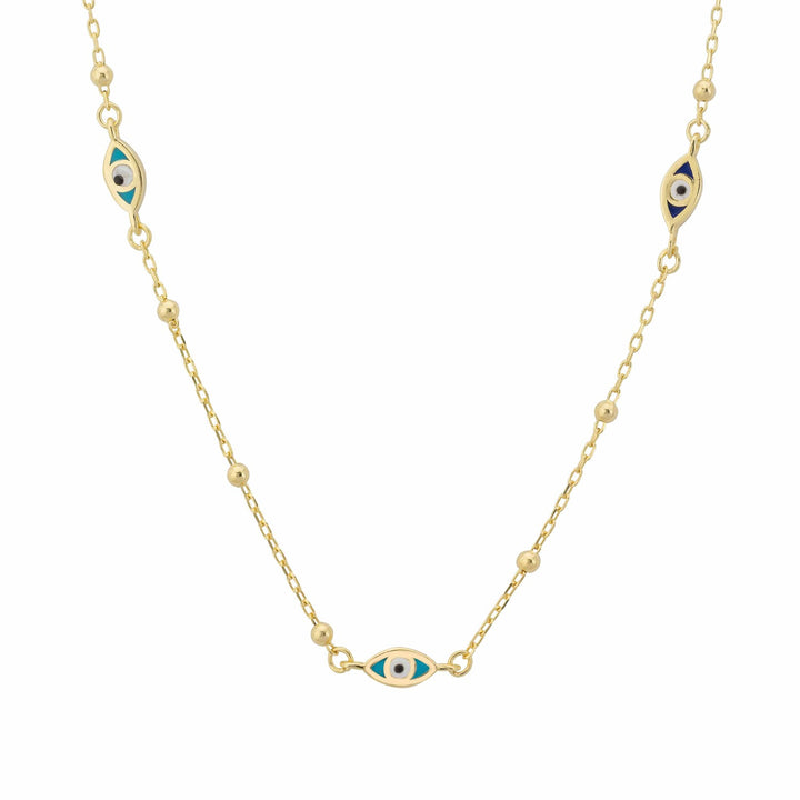 Evil Eye Elliptical Beaded Chain Necklace Gold