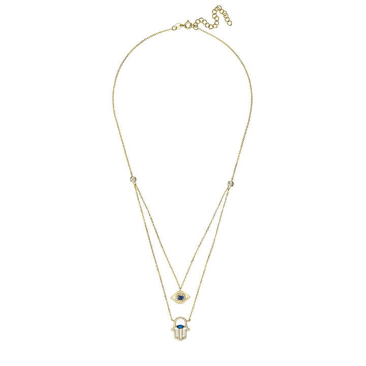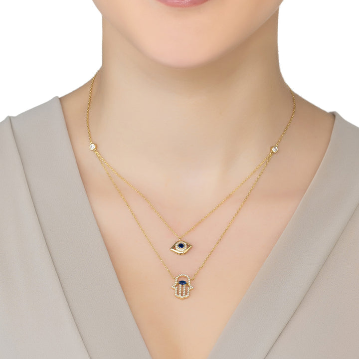 Hamsa Hand And Evil Eye Layered Necklace Gold