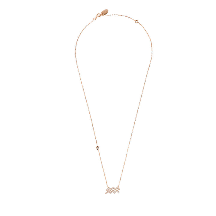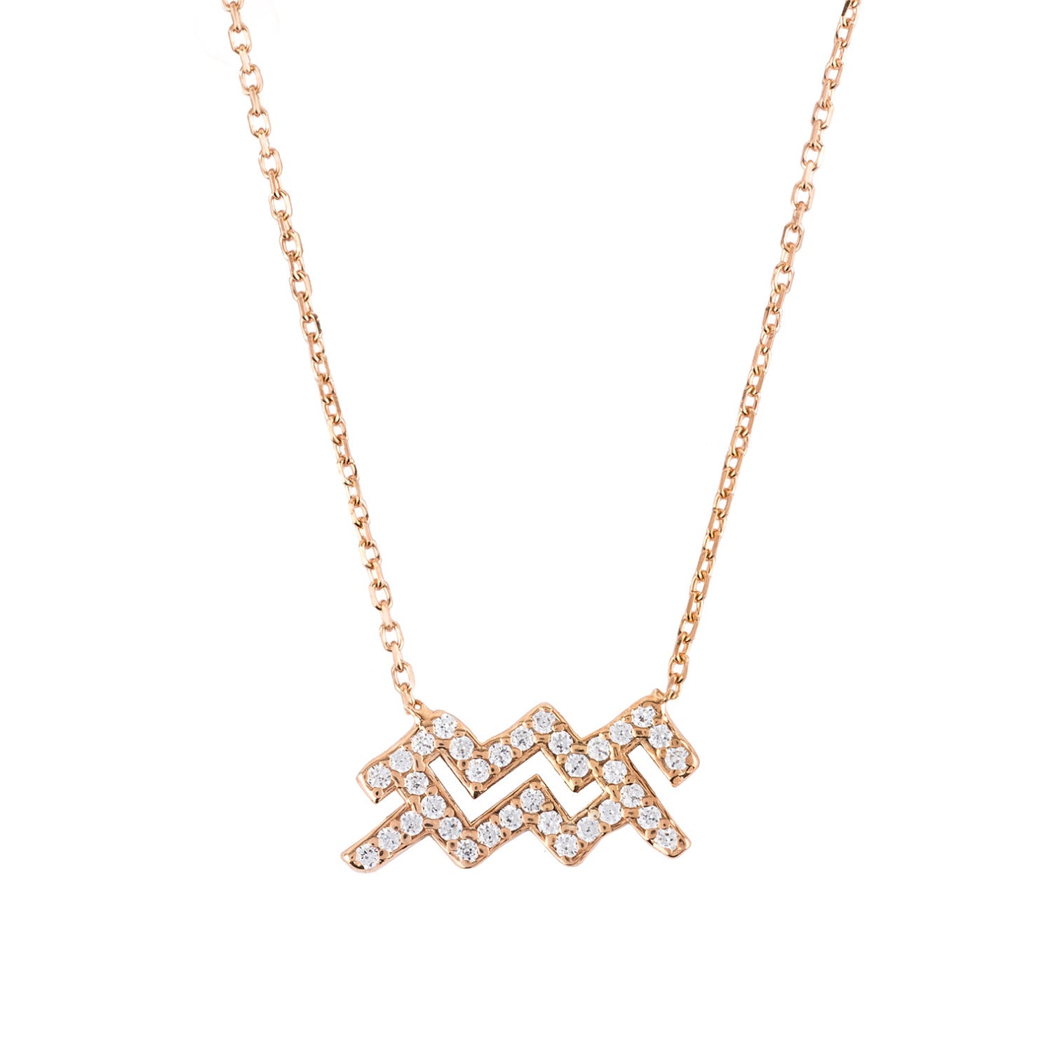 Made of 925 sterling silver. This necklace is hand set with multifaceted white zircons. Aquarius celebrate birthdays January 20 - February 18.Finished with a lobster clasp and size adjuster.