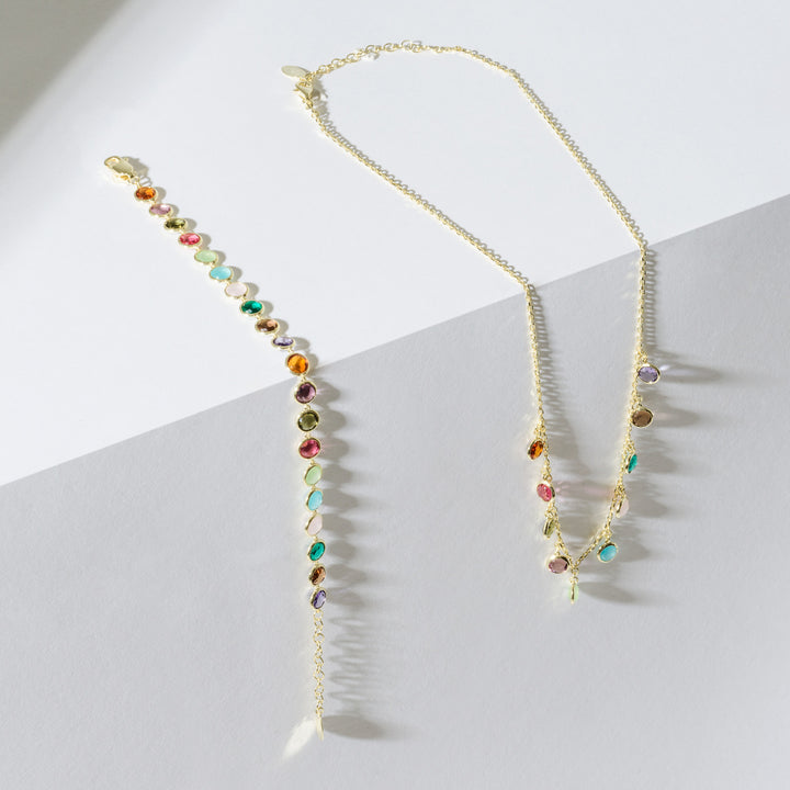 Florence Multi Coloured Gemstone Necklace Gold
