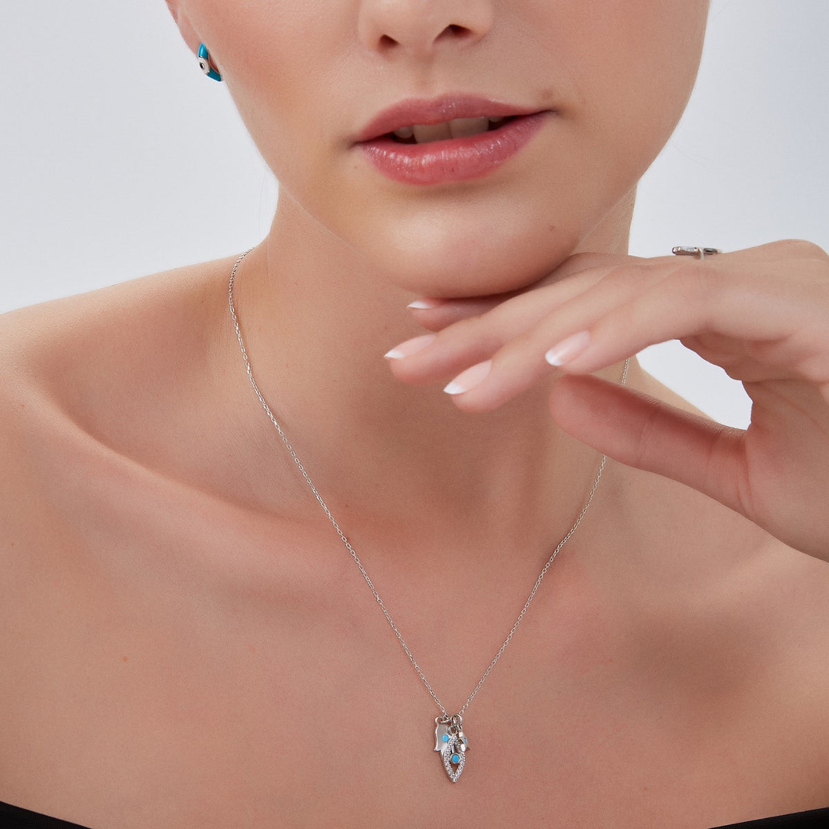 Hamsa Evil Eye Star Turquoise Sterling Silver Necklace