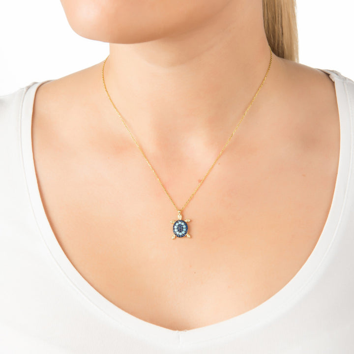 Turquoise Turtle Pendant Necklace Gold