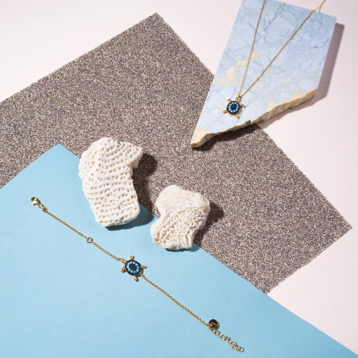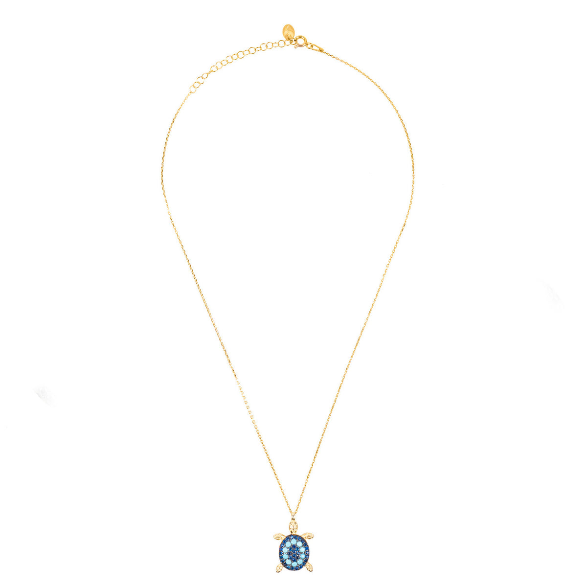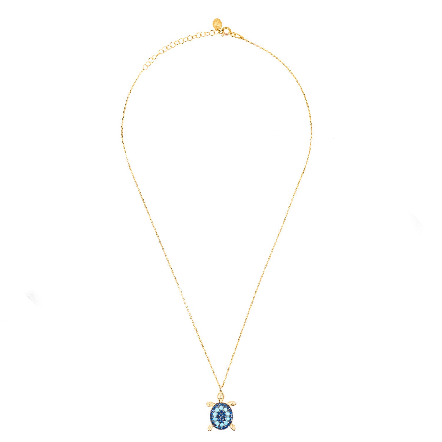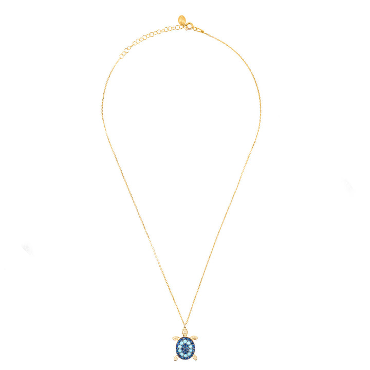 Ideal for those who love statement jewellery make this playful sea turtle necklace your new-found friend. The turtle pendant is adorned with Turquoise and blue cubic zirconia which sparkle in the light. The pendant hangs freely on delicate chain with lobster fastening and size adjuster for ease of wear.