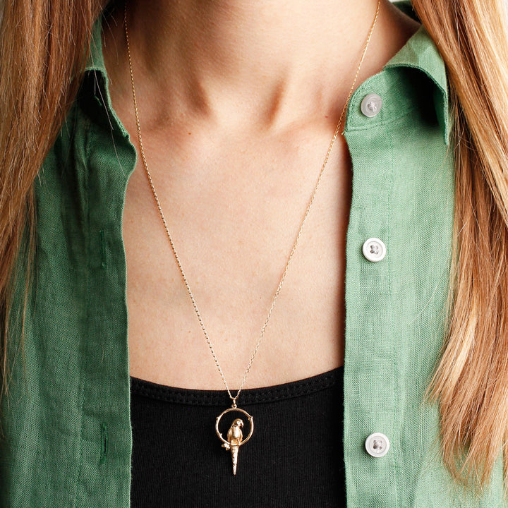 Lee Renee's parakeet necklace is sure to become a firm favourite in your collection - Inspired by the city-dwelling Parakeets of London’s green spaces. These little birds are full of character, their pretty green feathers, red-ringed neck and exotic call add a flash of colour and beauty to London on a grey day.