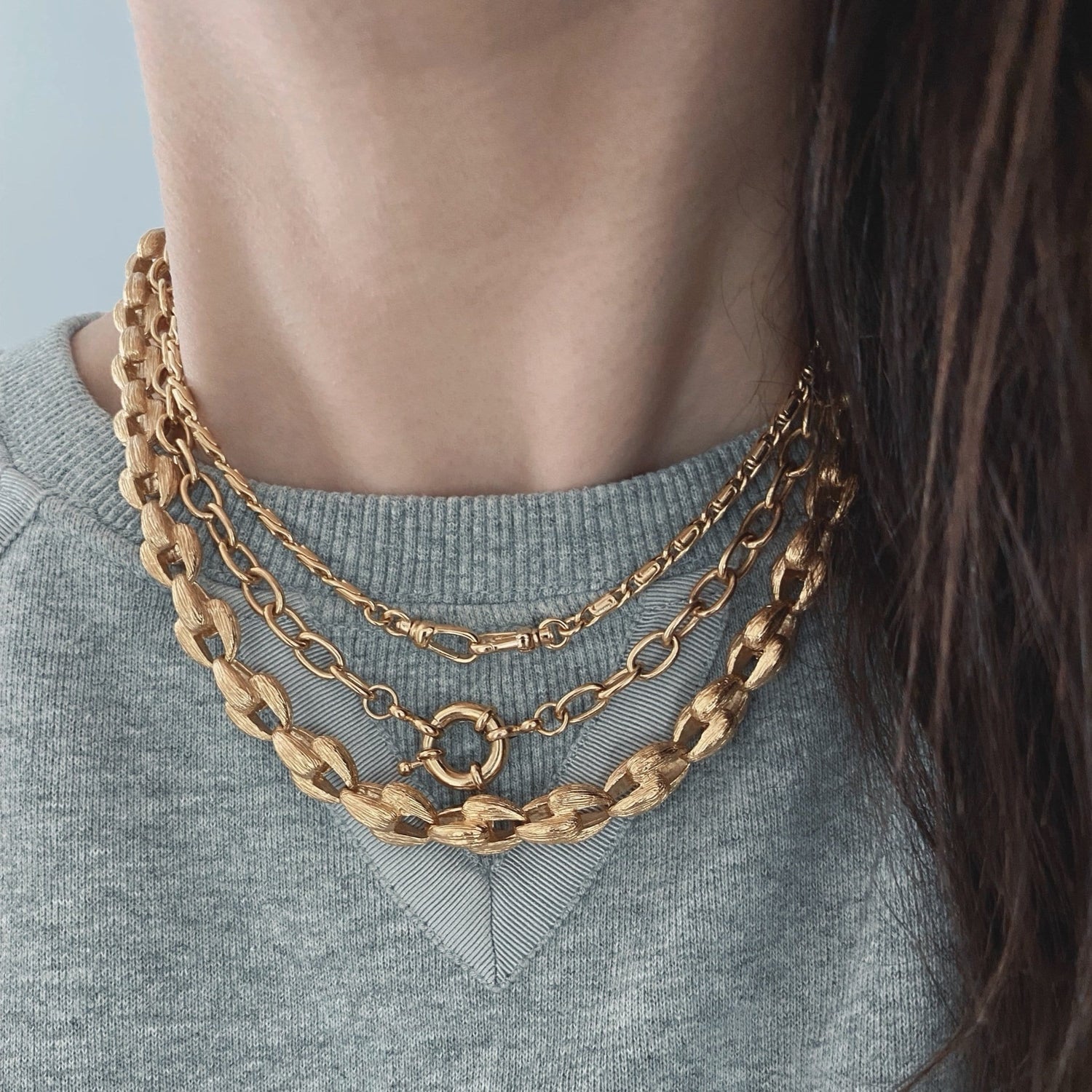 This necklace is made of recycled 24k gold plated brass and has a round byzantine chain with a double hook closure. It is handmade in France.