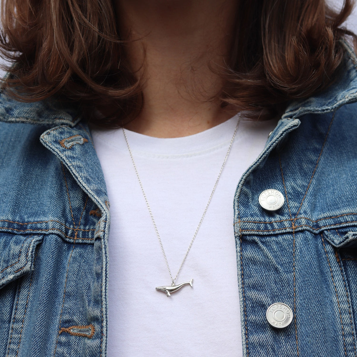 This Blue whale necklace is exquisitely detailed, showcasing this magnificent marine animal’s unique beauty and elegant movement. Our whale necklace is sure to become your most treasured piece, it’s perfect for adding a bit of sparkle to a casual look, and makes the ideal gift for nature lovers. These gentle giants of the sea are the largest animals that have ever lived, measuring a whopping 30 metres long and weighing over 200 tonnes in real life.