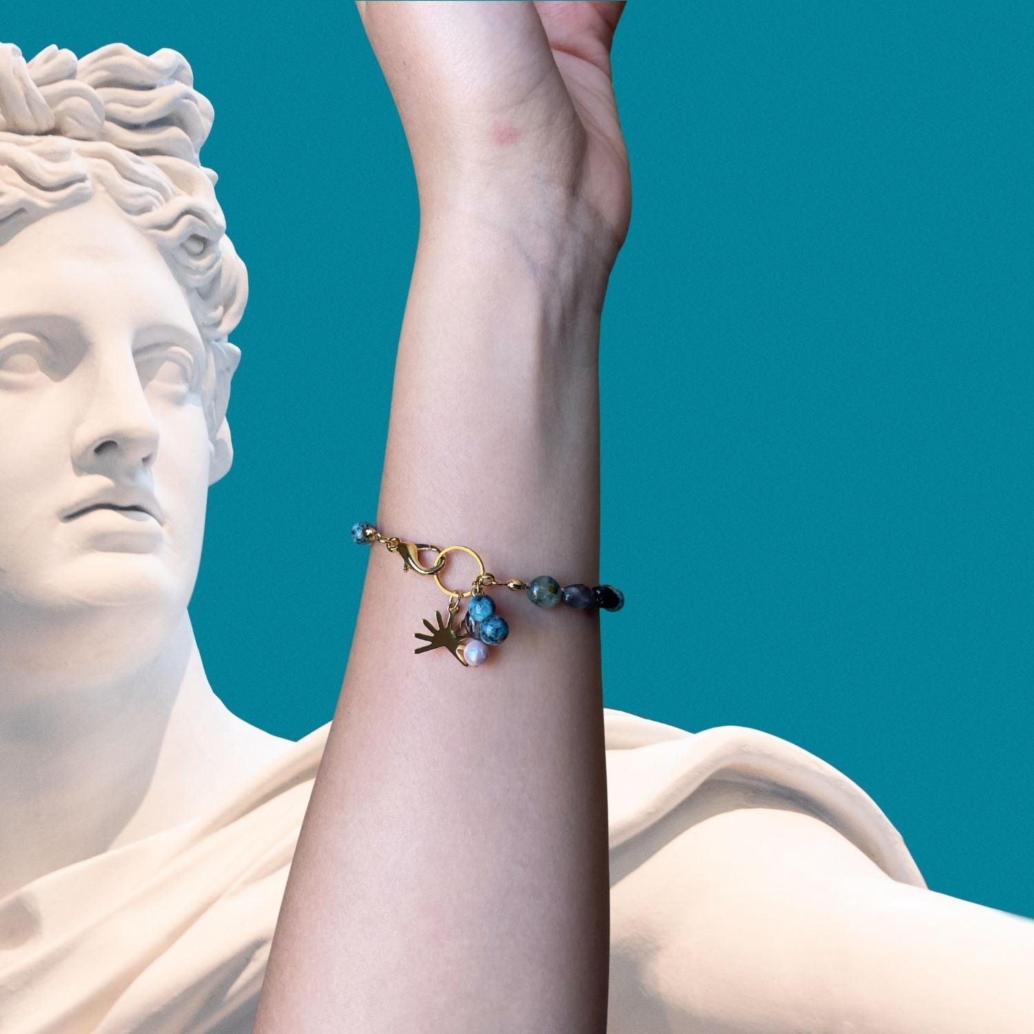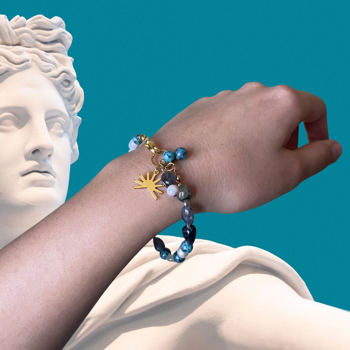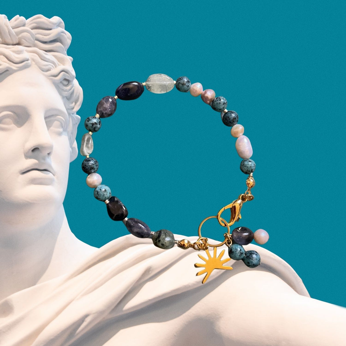 Athena – Gemstone & Pearl Bracelet With Rising Sun Charm