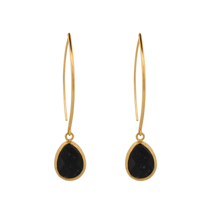 Black Onyx Gemstone & Gold Dangle Earring - Black