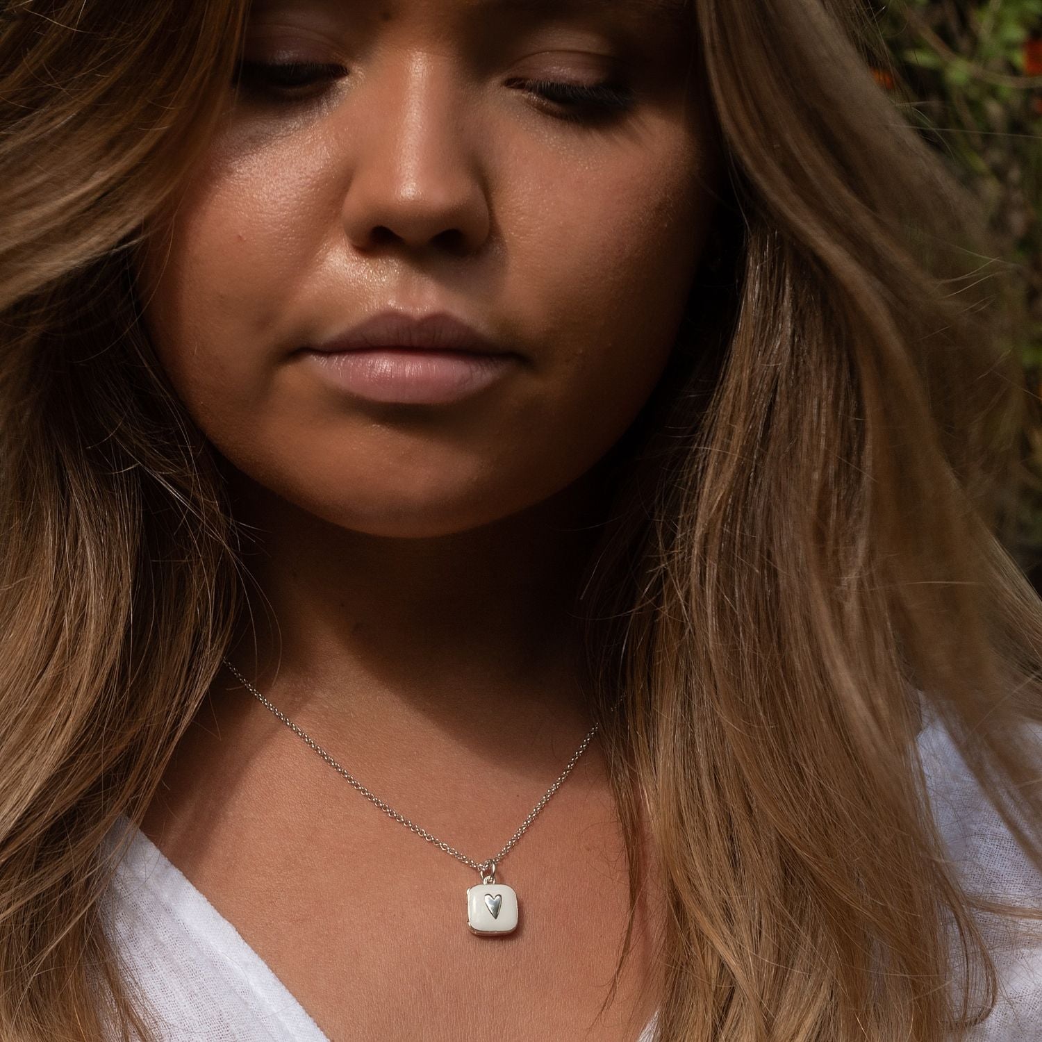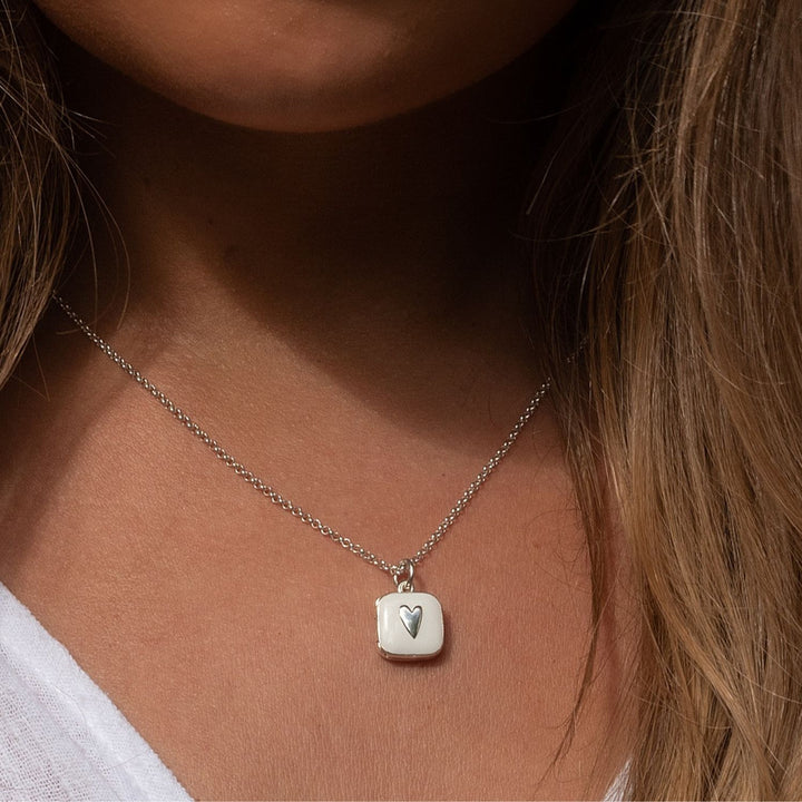 Embrace the enduring beauty of this sterling silver locket necklace. Crafted with high-quality materials, it features a classic heart shape highlighted by crisp white enamel. This piece is more than just an ornament; it's a cherished keeper of your most treasured memories. Open the locket to hold tiny photographs close to your heart, adding a touch of sentimental value to your everyday style.