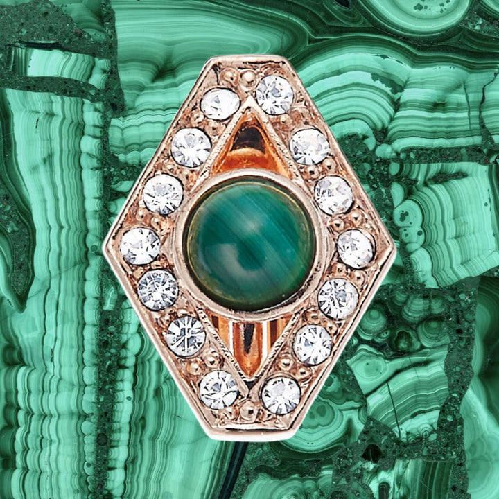 Crystal & Malachite Gold Clip On Earrings, Series Gem Flakes