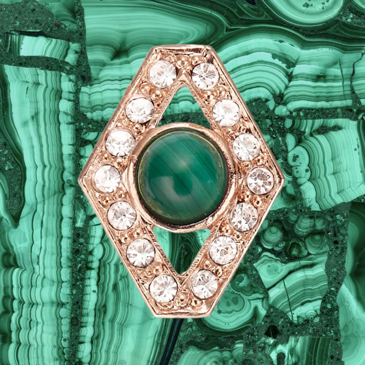 23K gold-plated earrings with 4mm malachite cabochons and Czech crystal inlay. Diamond shape: 13 x 10 mm. Titanium pin posts.