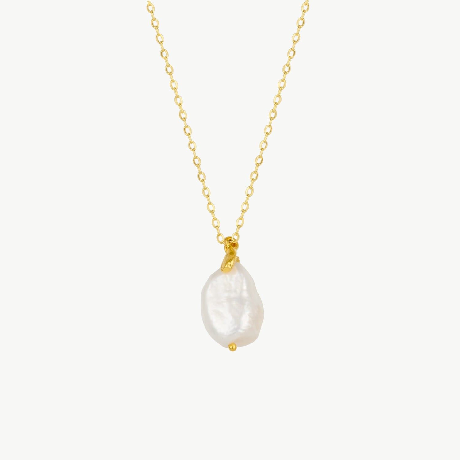 This necklace features a baroque keshi pearl pendant on a delicate gold chain.
