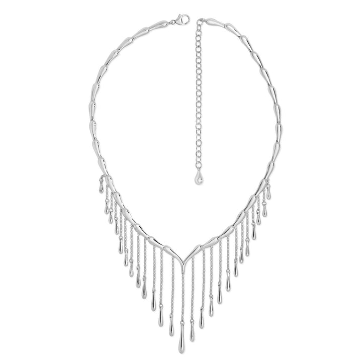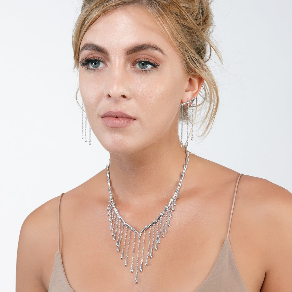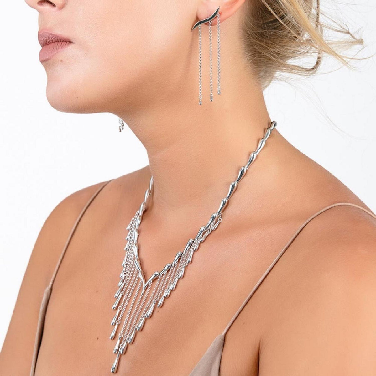 Award Winning Waterfall Necklace in Sterling Silver. A piece for women seeking an elegant statement. This elongated design cascades down the wearers body resembling the immovable waterfall in the picturesque Lake District where the inspiration unfolded.