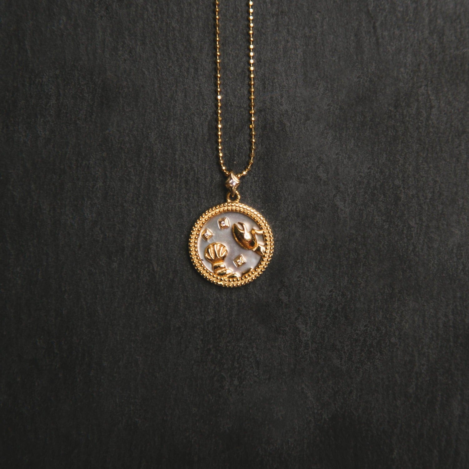 Asta Zodiac Star Sign Necklace Mother Of Pearl Gold Plated Cancer