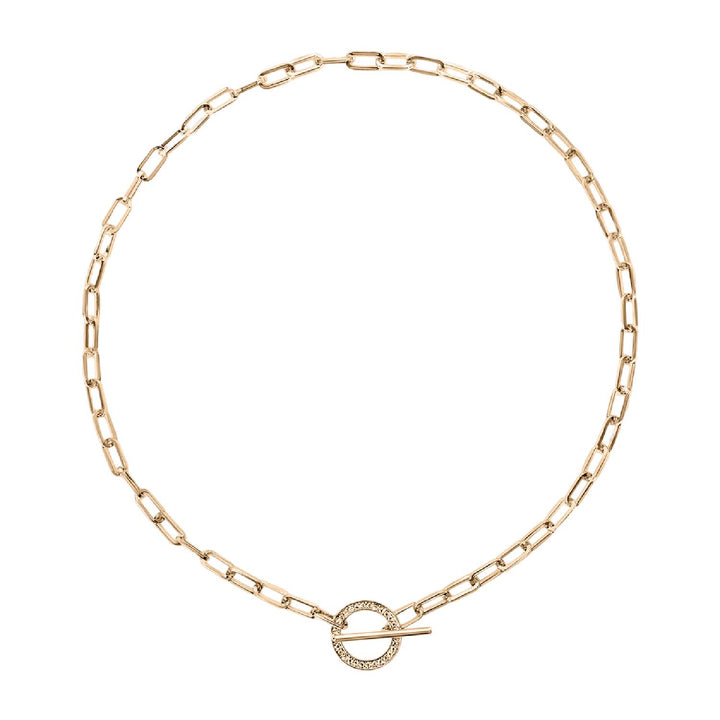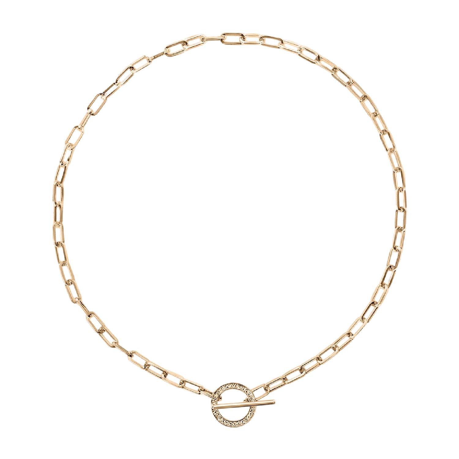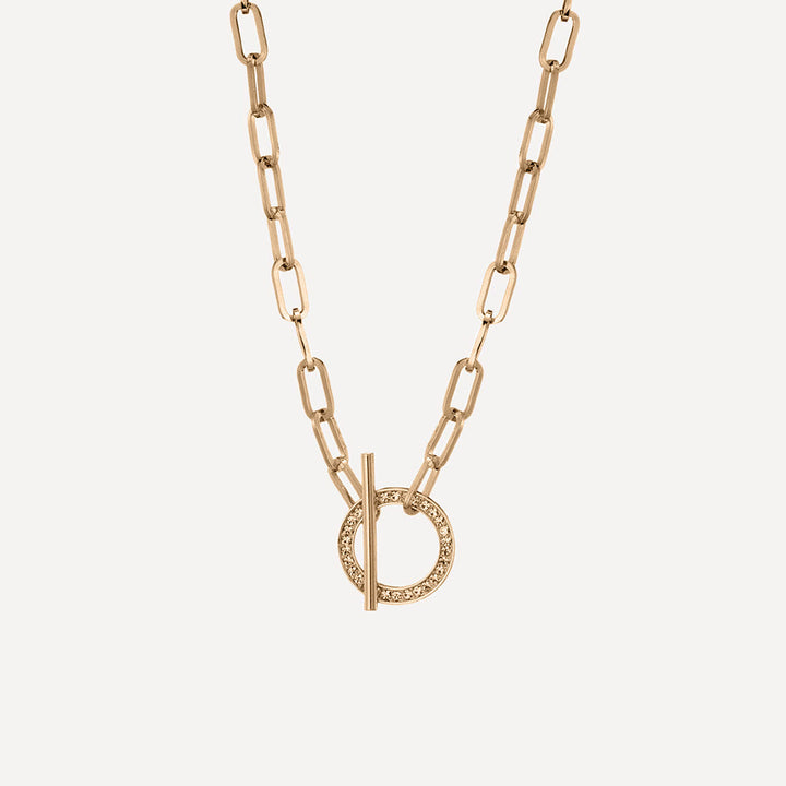 Elevate your look effortlessly with Margot Bardot's Chunky Chain Necklace in gold, a symbol of timeless elegance. Crafted from stainless steel and embellished with cubic zirconia, this necklace boasts rectangular links and a striking open circle pendant. Whether worn solo for a minimalist statement or layered with other favorites. Offers comfort and style, ideal for enhancing your everyday wardrobe with a touch of sophistication. Lovingly designed with your impeccable style in mind, it's a must-have accessory for any occasion.