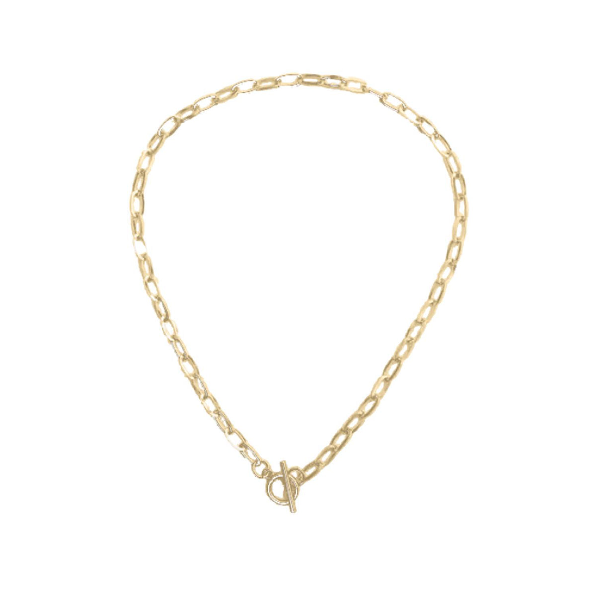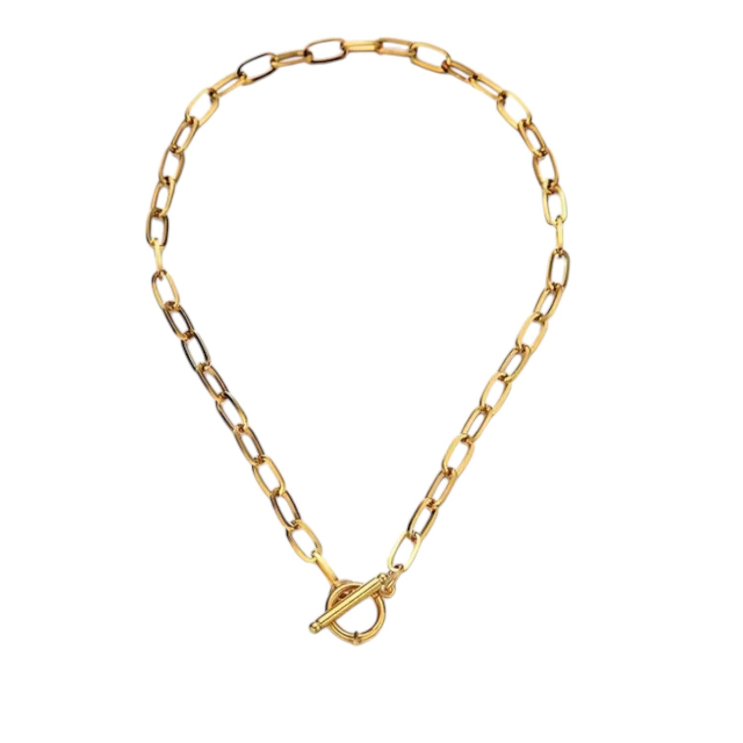 Elevate your style with Margot Bardot's Joyc Necklace in Gold. This stunning piece features chunky chain links with a luxurious gold finish, making it a perfect statement accessory for any outfit. Crafted from high-quality stainless steel, the Joyc Necklace is designed to be both durable and stylish. it offers a comfortable fit for all-day wear.