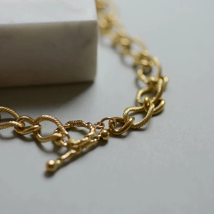 Enhance your neckline with the Margot Bardot Chunky Chain Necklace, a true statement piece that commands attention. Featuring bold, chunky chain links and a stylish toggle clasp, this necklace adds a touch of modern sophistication to any outfit. Crafted from nickel-free stainless steel, it ensures both durability and elegance. it offers a substantial yet comfortable feel. Perfect as a thoughtful gift for yourself or someone special, this necklace is designed to impress.