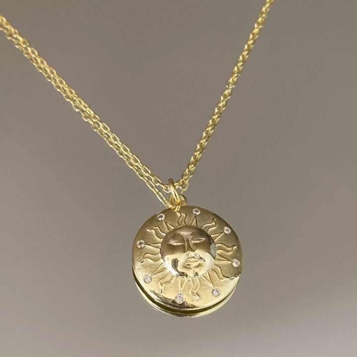 Sun Embossed Silhouette Sterling Silver Medal Necklace - Silver