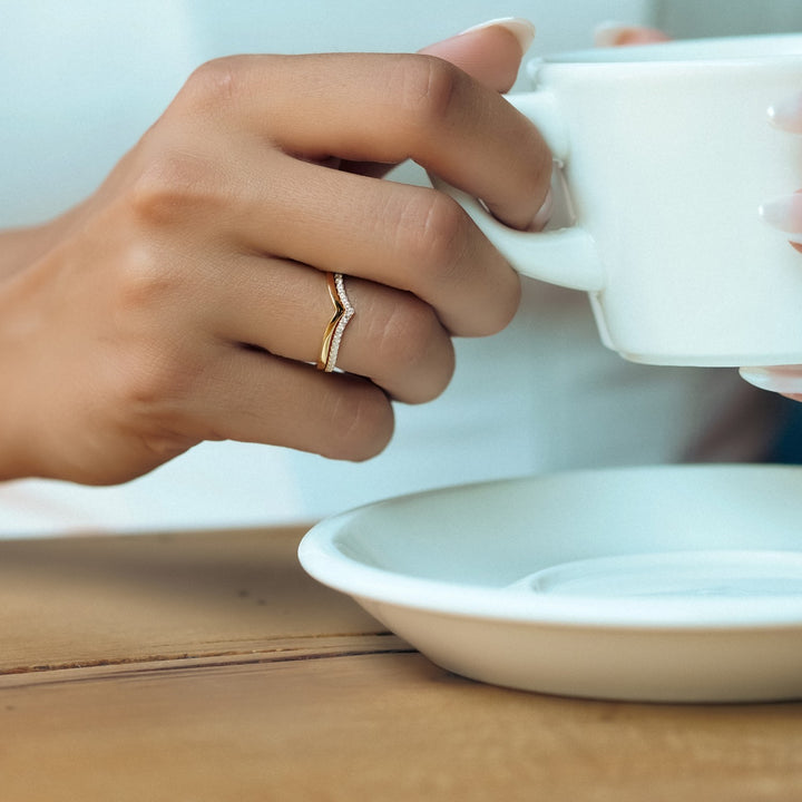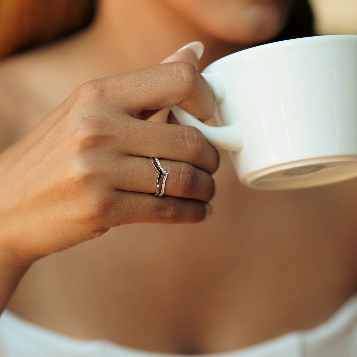 Sterling Silver Wishbone Stacker V Ring Set - Silver