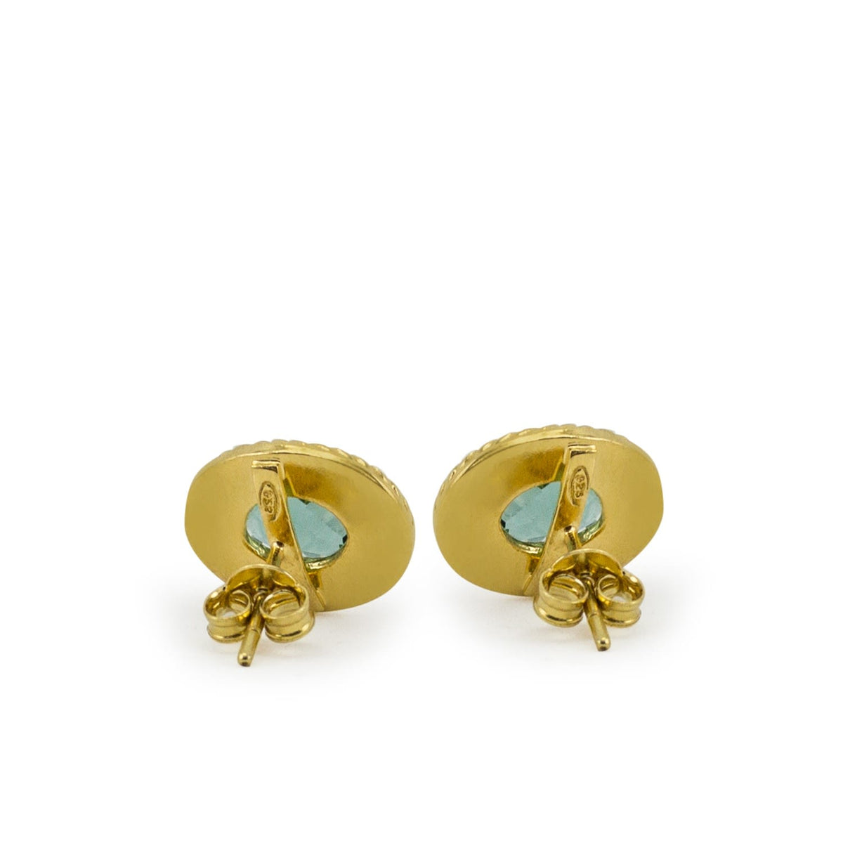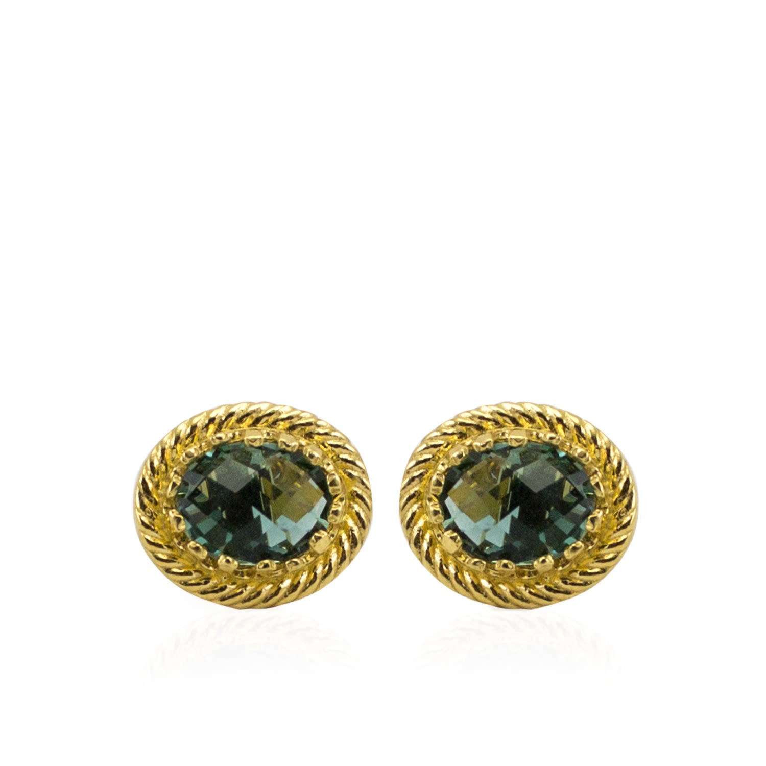 These earrings are made of 18-karat Gold Over Sterling Silver (1 micron thickness) and feature 3.0-carat green agate cabochons. They are Nickel-free and made in Italy.