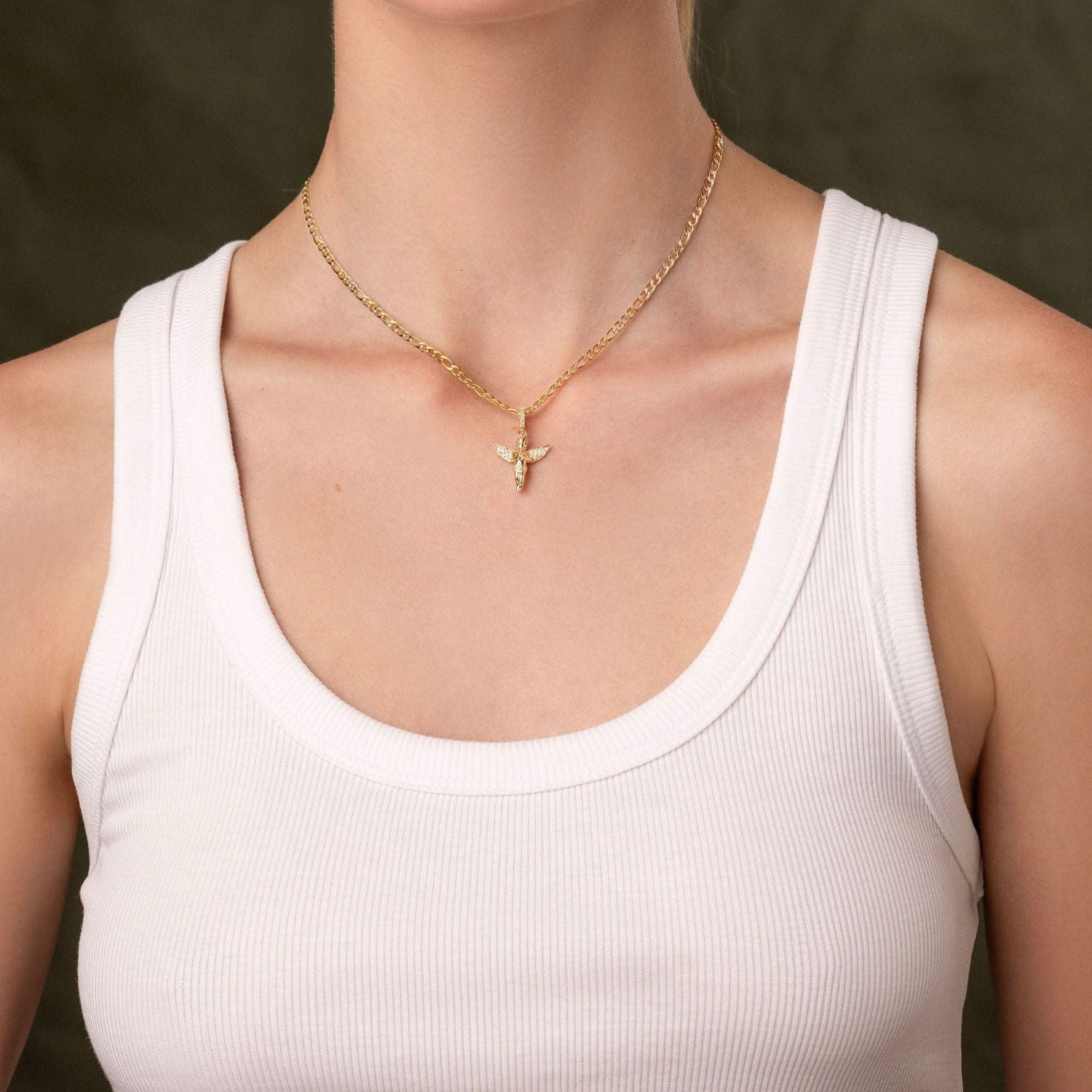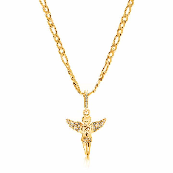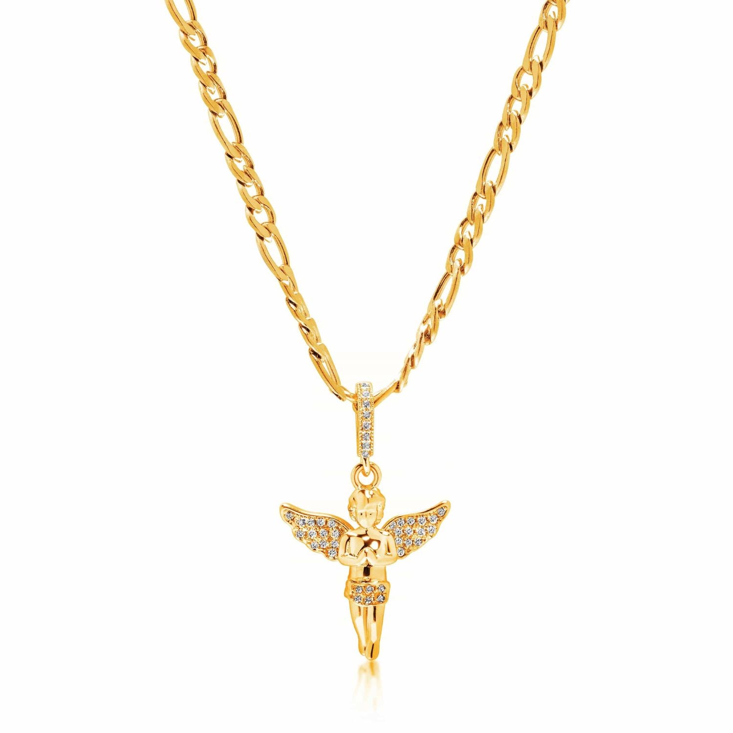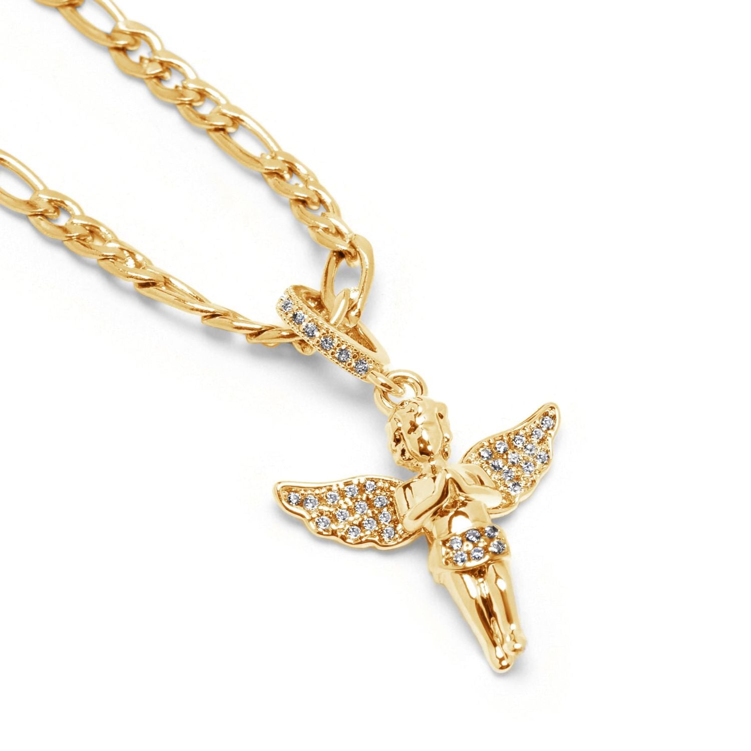 This edgy necklace features a gold-plated Angel pendant, suspended on a figaro chain. Layer it with other necklaces for a stylish, multi-dimensional look.
