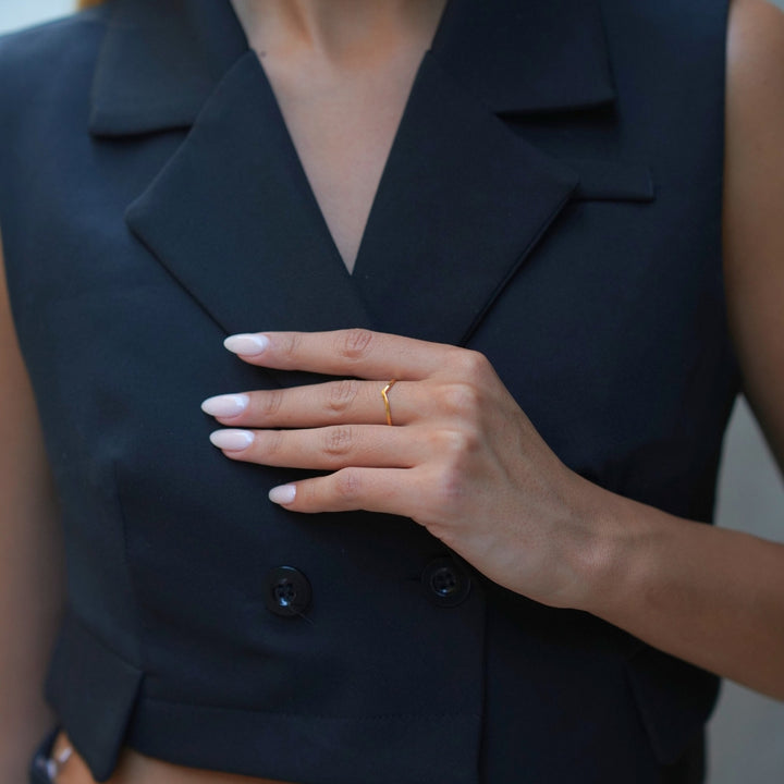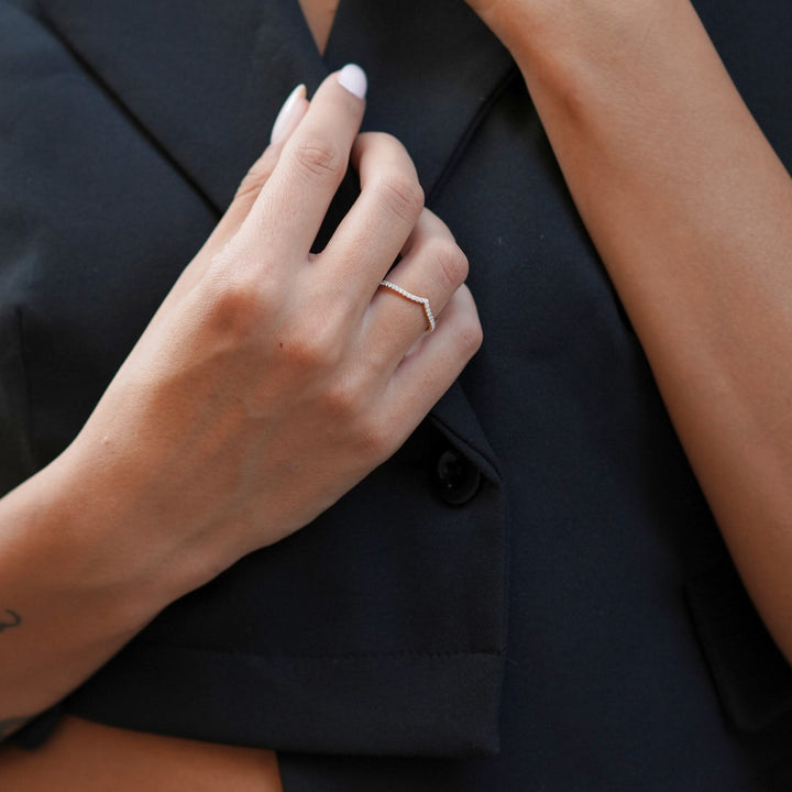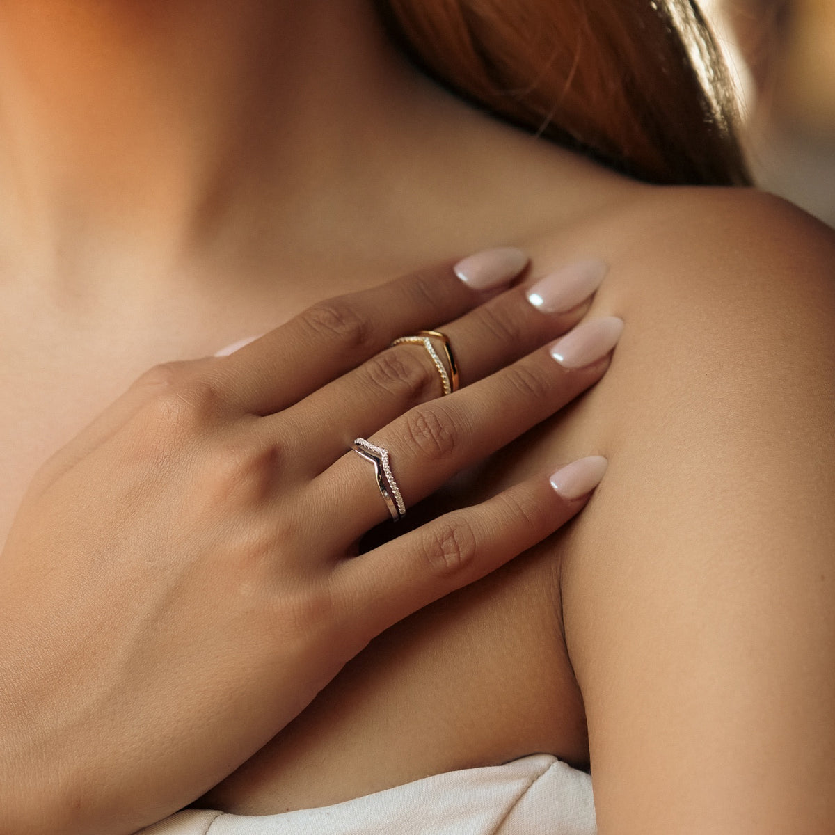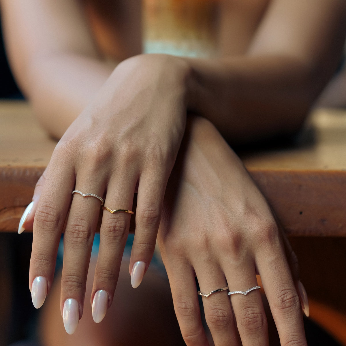 Sterling Silver Wishbone Stacker V Ring Set - Gold