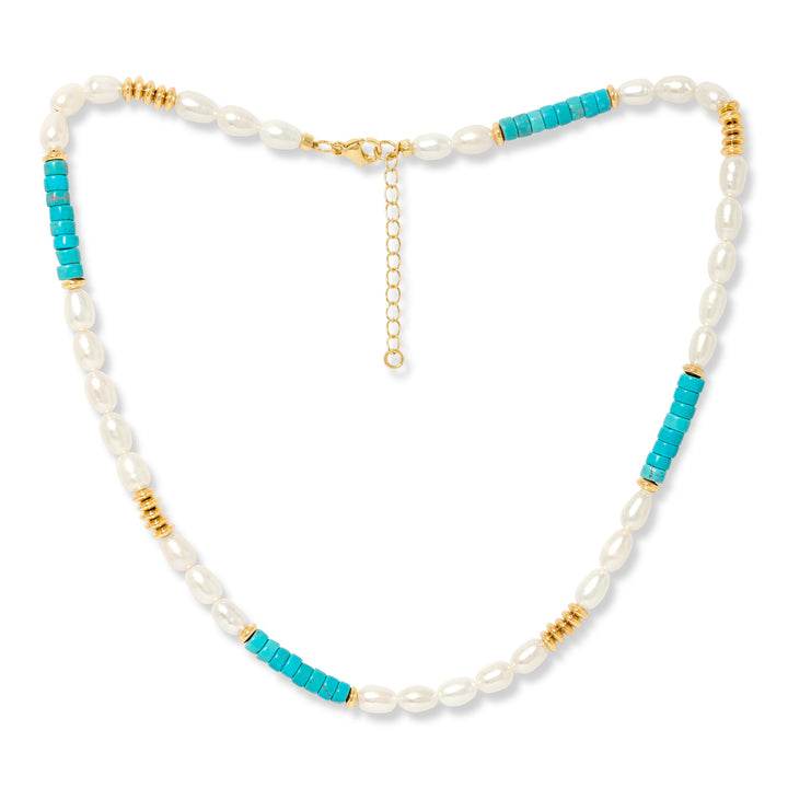 Nova Oval Cultured Freshwater Pearls Necklace With Turquoise Gold Beads