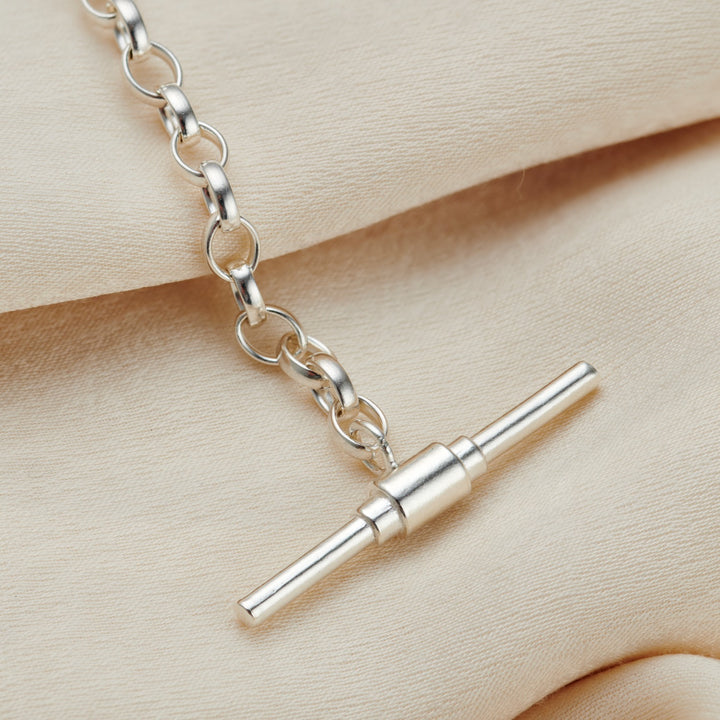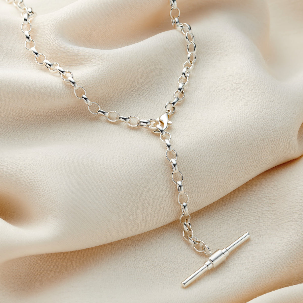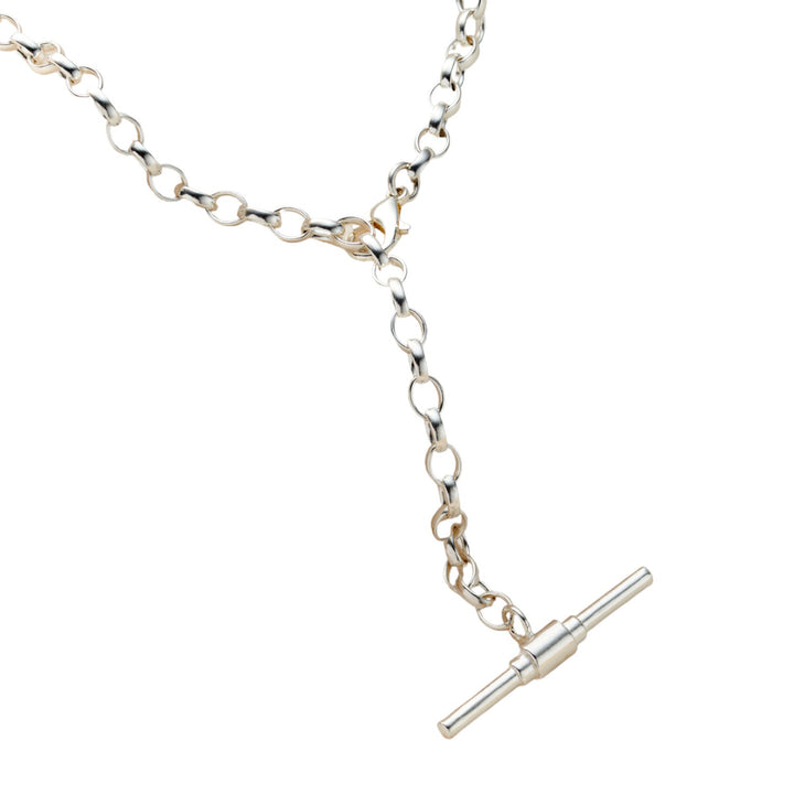 Sterling Silver Chunky Belcher Chain T Bar Lariat Necklace