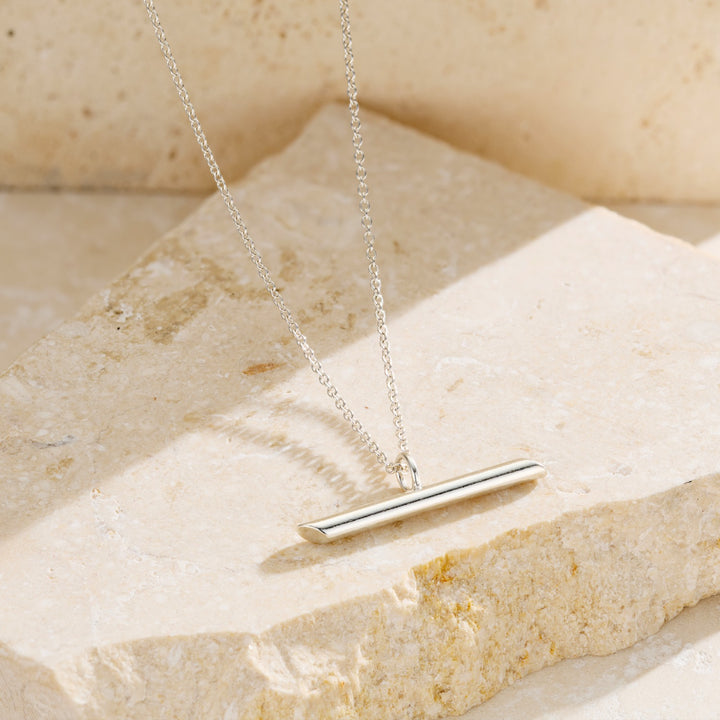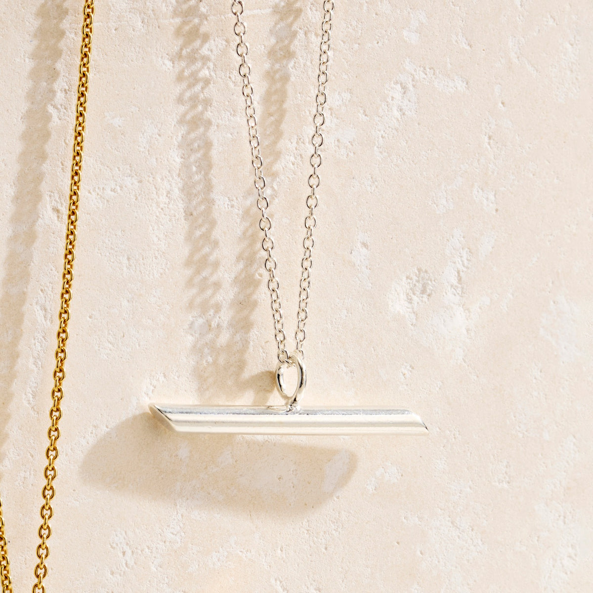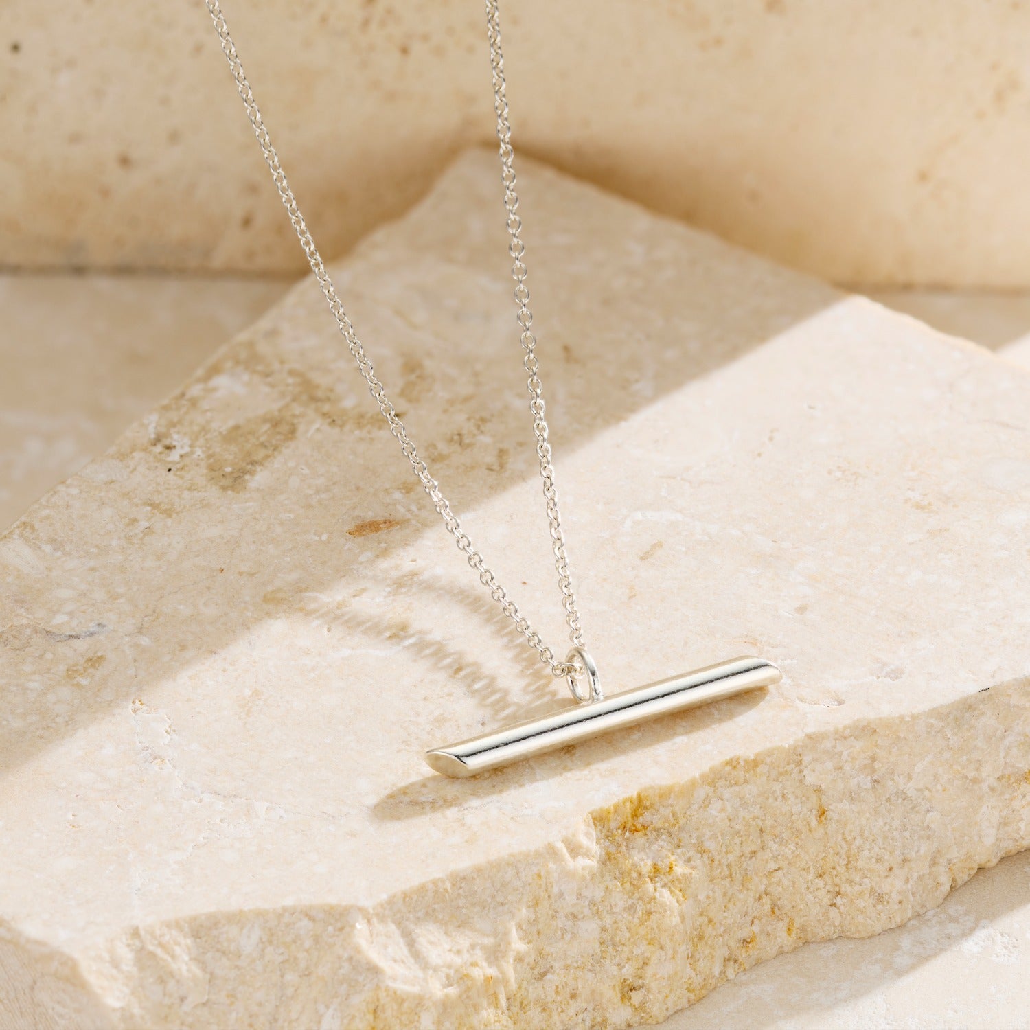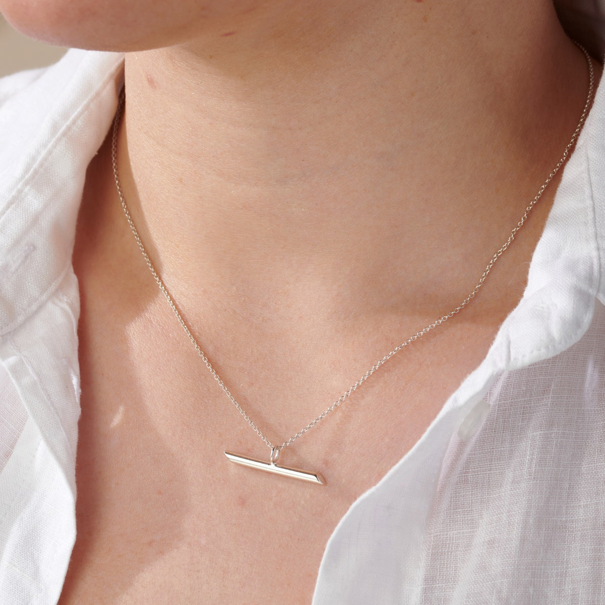 The feminine Sterling Silver Flow T-Bar Necklace is a sophisticated blend of elegance and modern style. Hand made with meticulous attention to detail, this necklace features a sleek, horizontal t-bar pendant that gracefully anchors the piece, symbolising balance and harmony. Its minimalist design makes it versatile, perfect for both casual and formal wear, while its subtle femininity adds a touch of grace to your everyday ensemble. Ideal for those who appreciate simplicity with a hint of modern chic. This necklace is a timeless accessory that exudes effortless elegance.