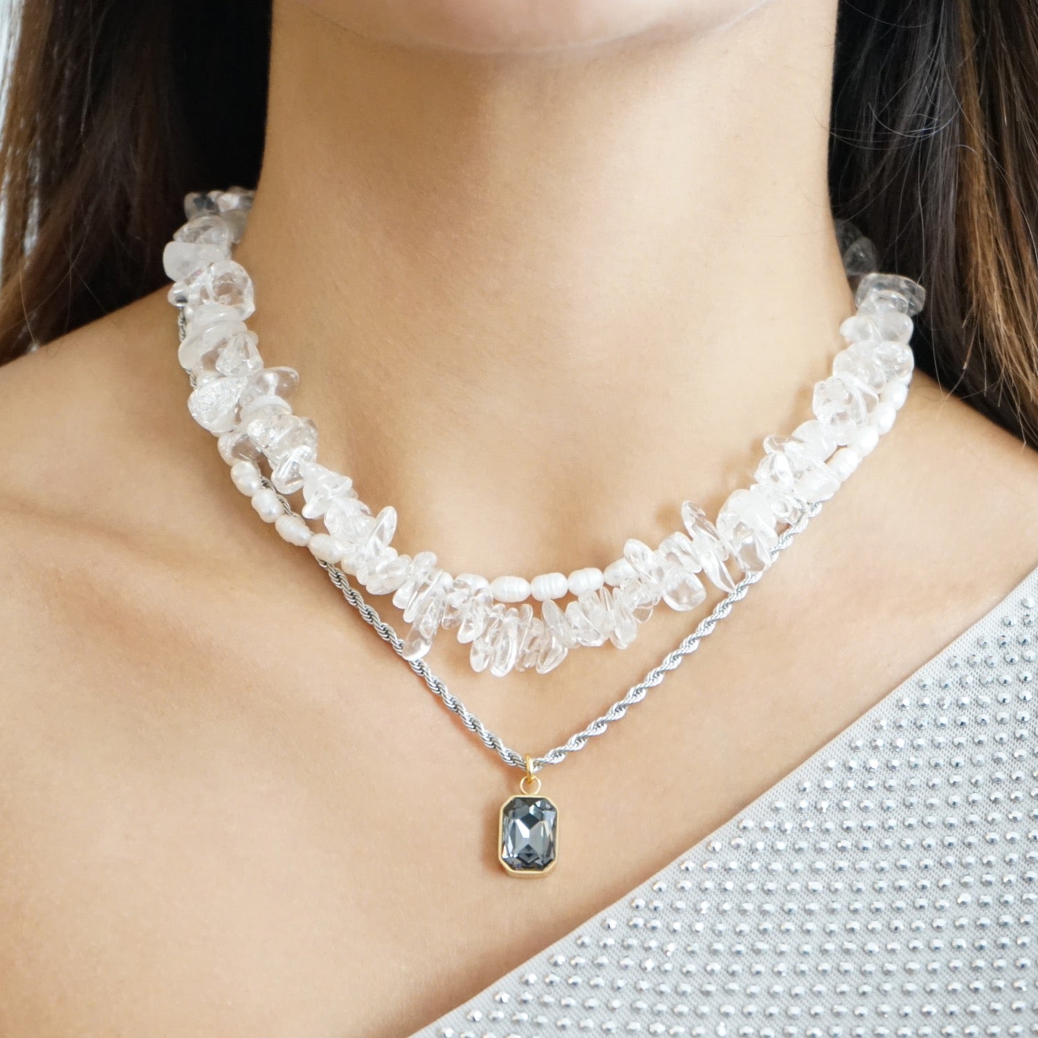 Our Tristan necklace is made of a silver stainless steel chain and a one-of-a-kind quartz gemstone pendant. Every piece is unique. Made by hand in Germany. It comes in a beautiful Smilla Brav jewelry box.